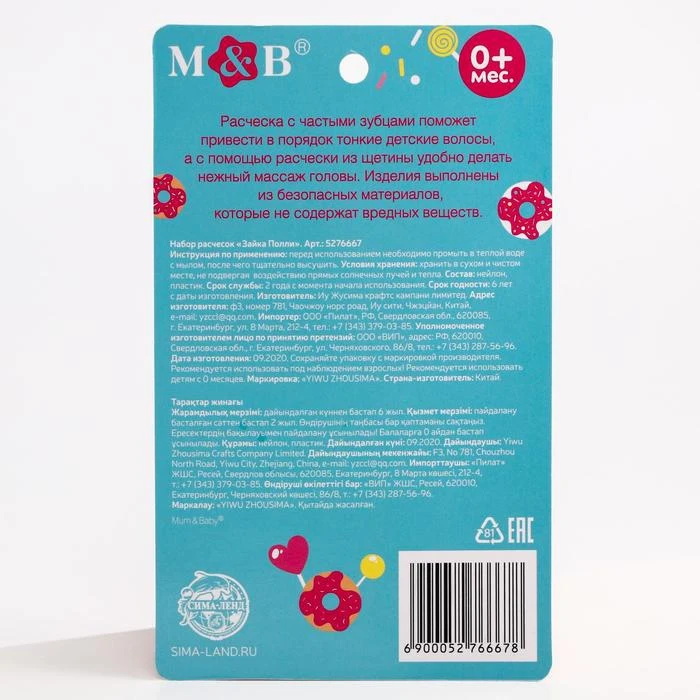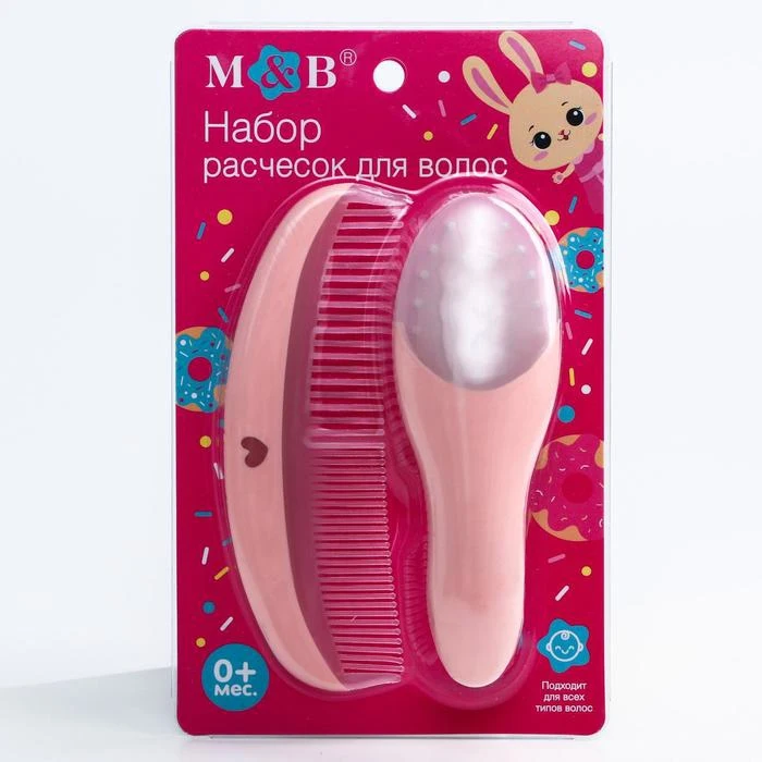 Набор для ухода за волосами «Зайка Полли», расческа и щетка, цвет розовый