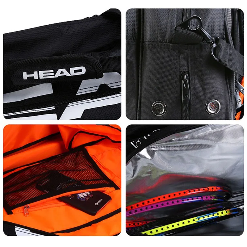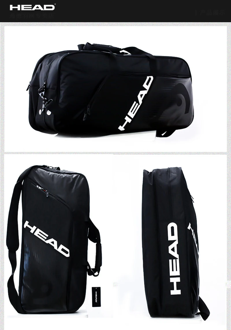 Black Head Tennis Bag Men Women Large Capacity 6 Rackets Sports Bag De Tenis Saco Badminton Tennis Racket Backpack HEAD Original