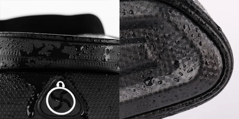 Водонепроницаемая ткань из полиуретана с текстурой углерода и водонепроницаемая застежка-молния позволяют продолжать ходить под дождем. Светильник