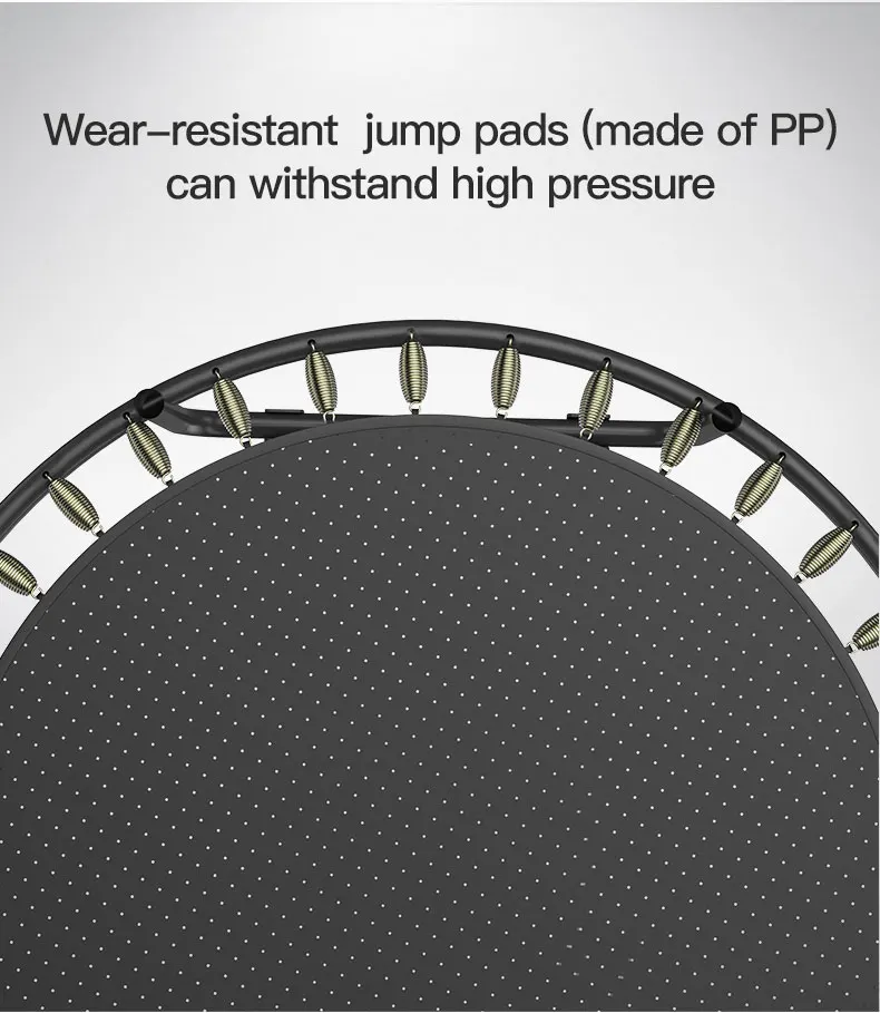 Износостойкие и устойчивые к ультрафиолетовому излучению скакалки (изготовленные из полипропилена) могут выдерживать высокое давление; 36 оцинкованных пружин обладают хорошей эластичностью и выдерживают 250 кг (550 фунтов)