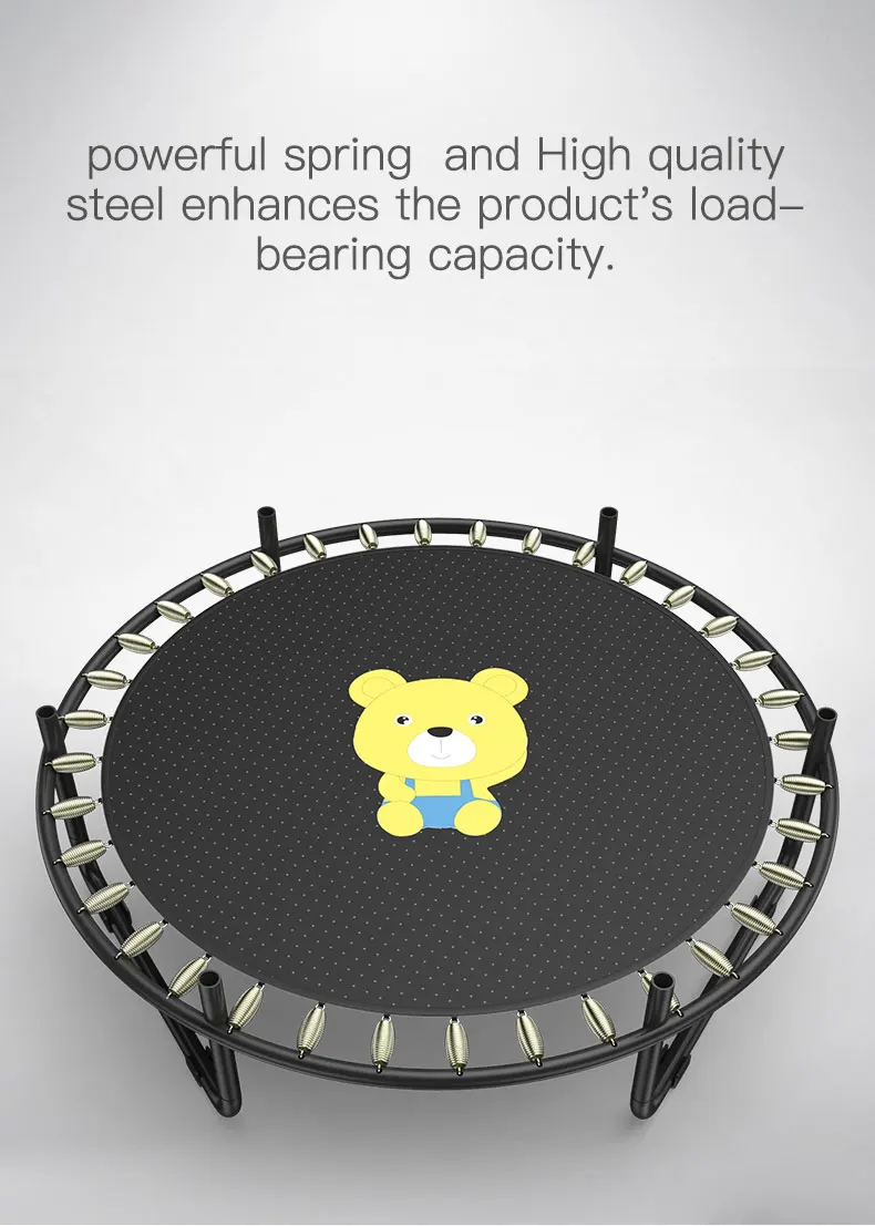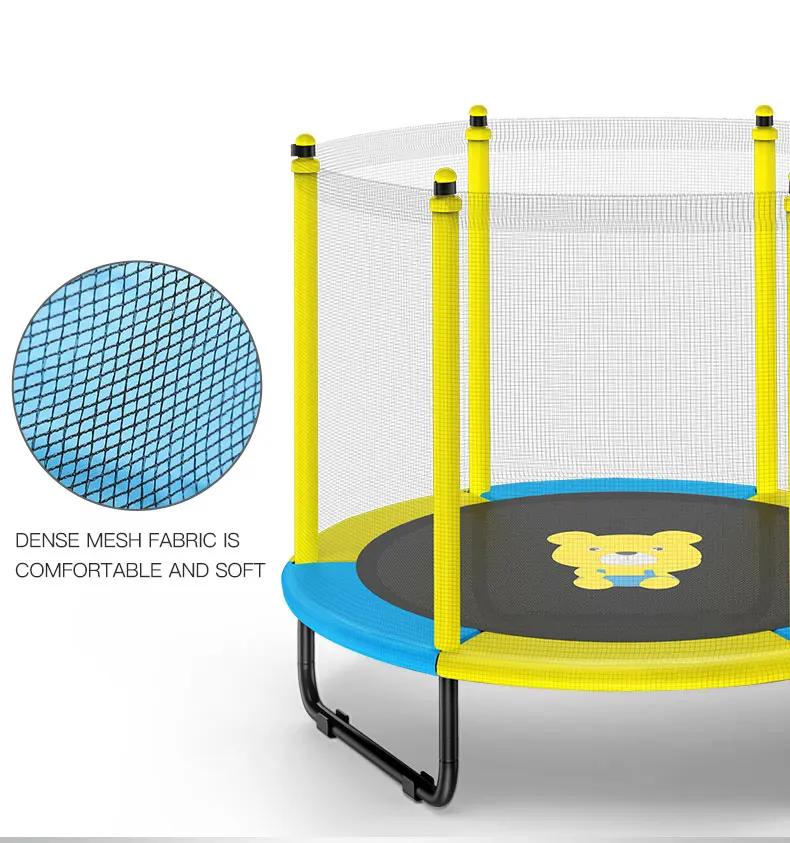 Тяжелый судить 4 дюйма пружины обеспечивают превосходное качество отказов и устойчив к коррозии. Коврик для прыжков изготовлен из сверхпрочного полипропилена с УФ-защитой для прочности и долговечности. Дизайн желтого цвета делает батут более спортивным и динамичным.