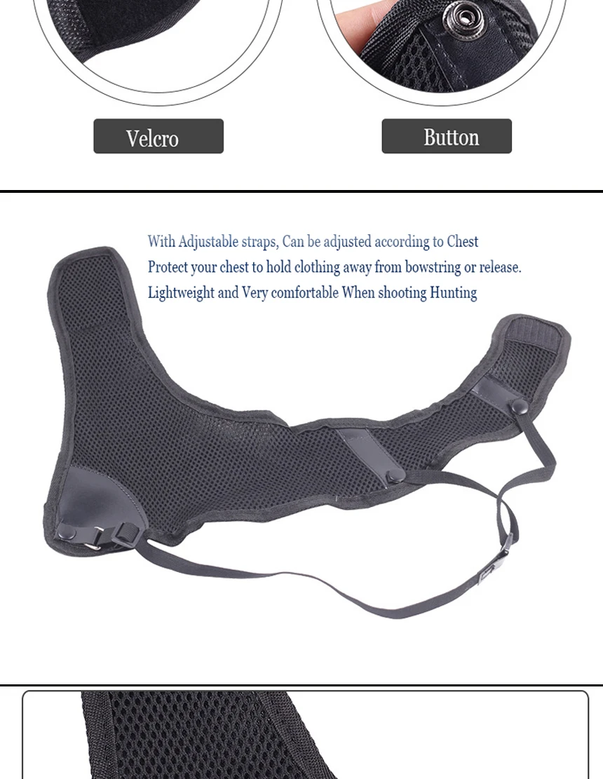 С регулируемыми лямками, можно отрегулировать по груди Защитите грудь, чтобы удерживать одежду вдали от бантиков. Легкий и очень удобный при съемке на охоте Этот тип подходит для левой груди для правшей, чтобы прикрыть левую сторону груди Дышащие и удобные. Подходит для любого лука из лука Вес: 64 г Размер: 28*18 см Материал: сетка Посылка 1 * Защита для груди стрельбы из лука