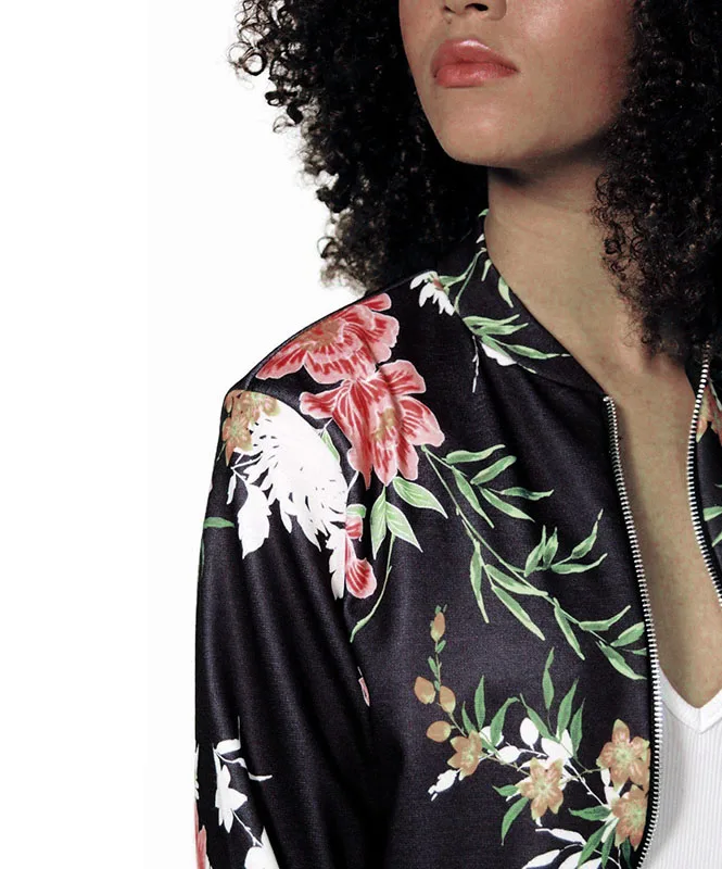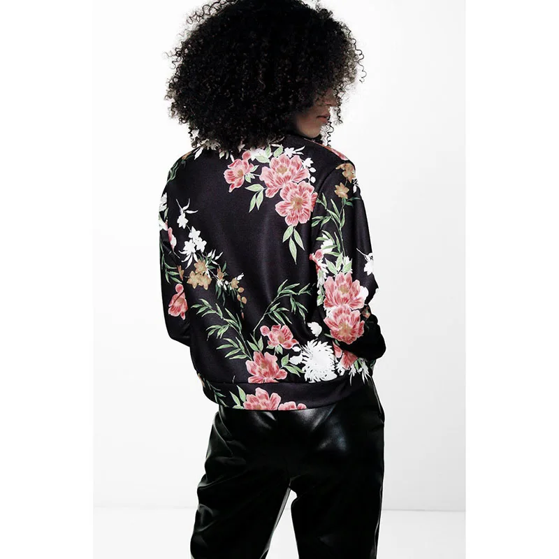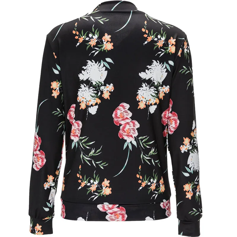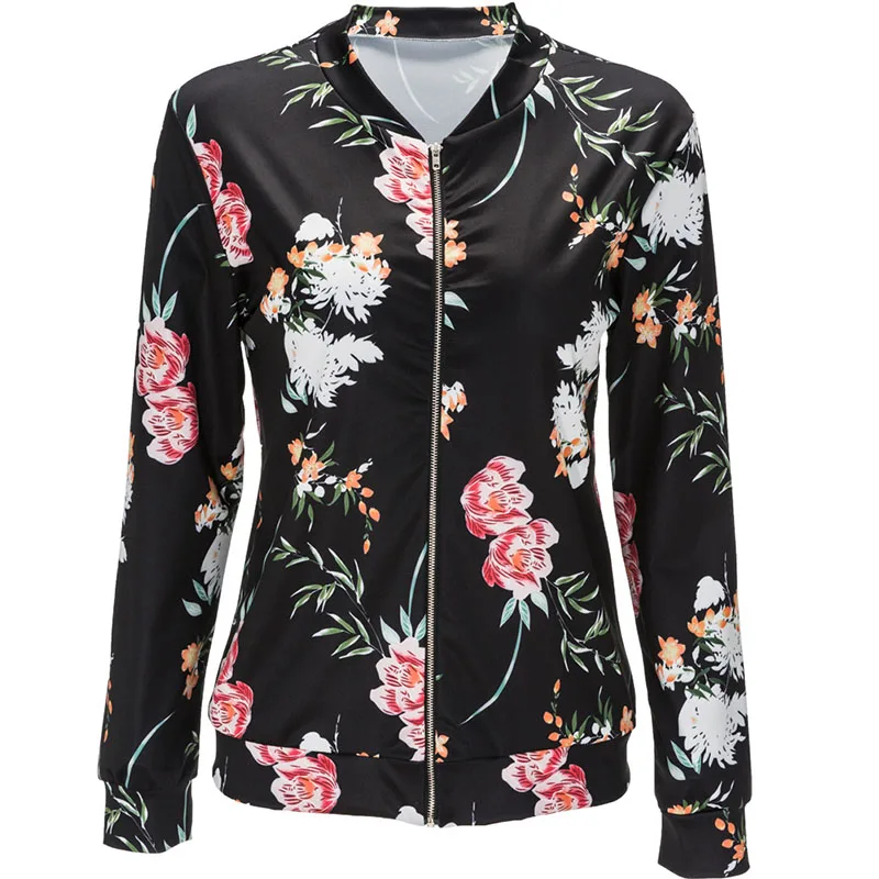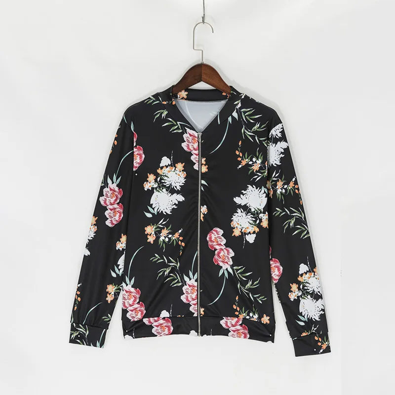 2021 весна и осень Новые простые Стильные повседневные куртки с цветочным принтом женские куртки с длинным рукавом на молнии пальто Акция распродажа
