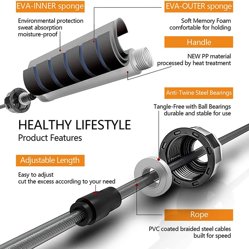 【Быстрый прыжок, БЫСТРЫЙ Прыжок 】 встроенные высококачественные шариковые подшипники, скакалка обеспечивает вам плавное движение прыжков. Он поддерживает быстрые прыжки, защищая вас от возможных замыканий, которые могут возникнуть, удовлетворяя ваши потребности в безопасности и удобстве.