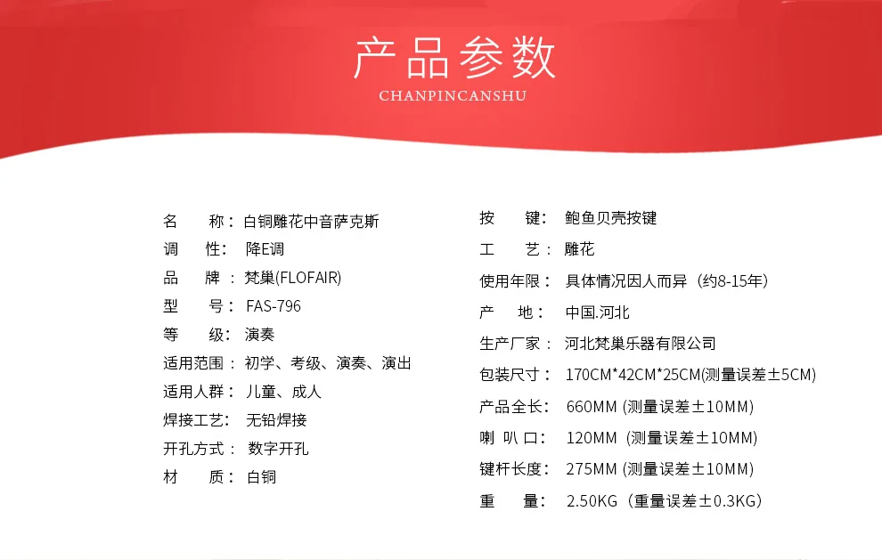 Торговая марка: белый медный резной альт-саксофон Тон: бемоль Бренд: Flofair Номер модели: FAS - 796 Класс: выполнение Область применения: начинающих, оценка, производительность, производительность Применимые люди: дети и взрослые Характеристики: полная длина саксофона 660 мм, звонок 120 мм, Длина ключевого стержня 275 мм (погрешность измерения ± 10 мм) Вес: 2,5 кг (Вес погрешность ± 0,3 кг) Процесс сварки: Бессвинцовая сварка Режим открытия: цифровое открытие Материал: белая медь Нажмите: естественная Кнопка оболочки abalone Искусство: резьба Срок службы: варьируется от человека до человека (около 8-15 лет) Происхождение: Китай. Хэбэй Производитель: hebei fanchao музыкальный инструмент co., LTD Размер упаковки: 70 см * 42 см. 25 см (погрешность измерения ± 5 см)