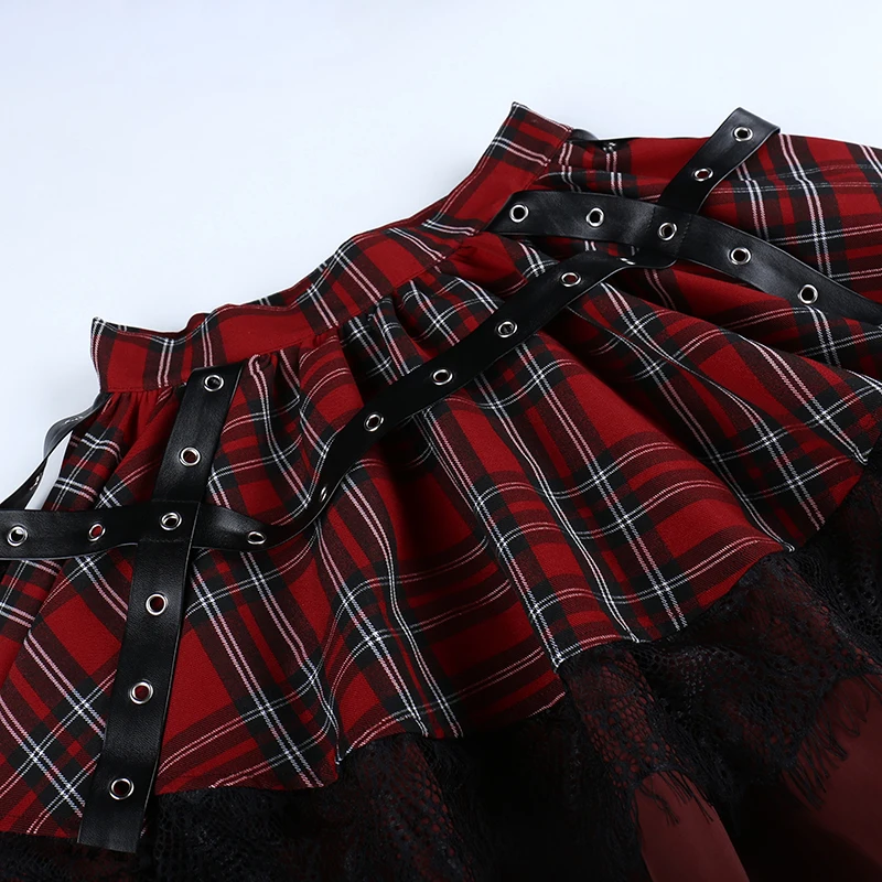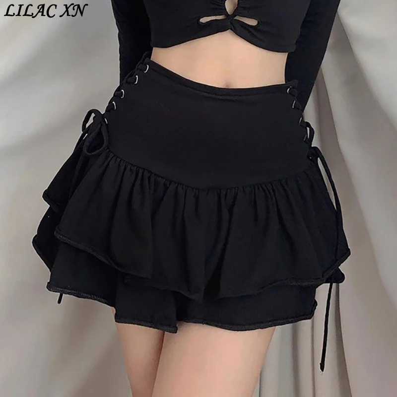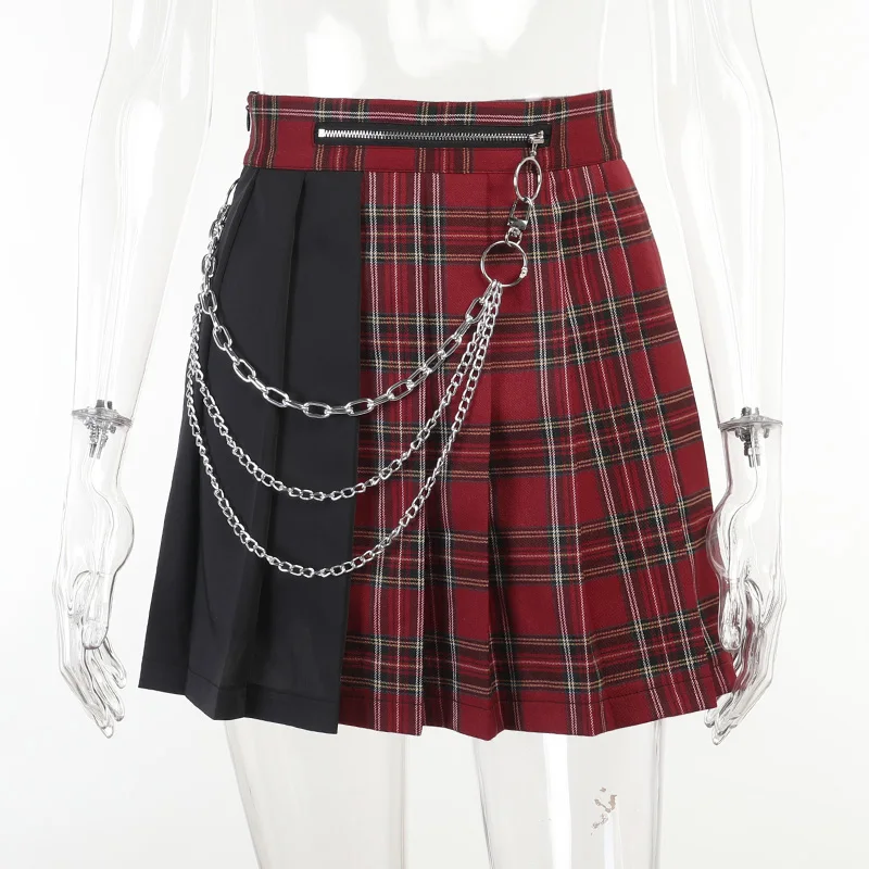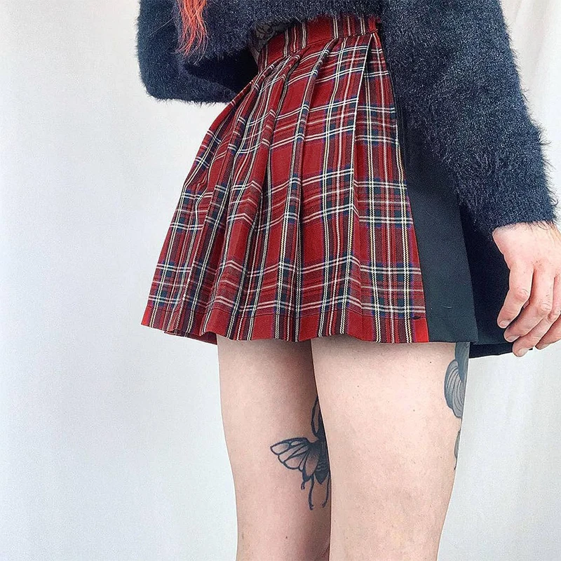 Y2K Goth клетчатая плиссированная мини-юбка Kawaii Harajuku Эстетическая Сексуальная черная трапециевидная юбка с высокой талией летние женские юбки уличная одежда