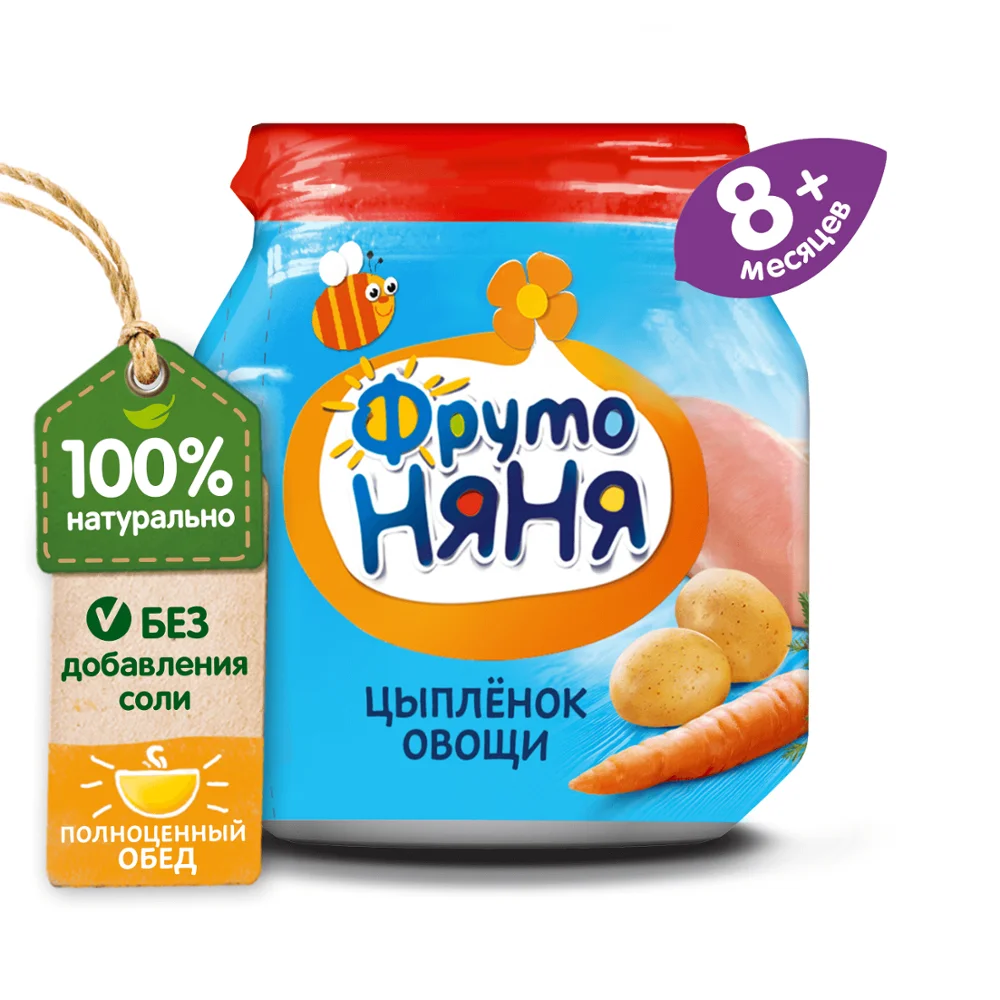 Мясное пюре Мясные пюре – это важный продукт в ежедневном рационе ребенка старше 6 месяцев, источник белка и незаменимых аминокислот, необходимых для строительства организма малыша! Мясные пюре «ФрутоНяня» разработаны специально для того, чтобы каждый обед Вашего малыша не только насыщал его, но и помогал полноценному и гармоничному росту. Важно Благодаря высокому содержанию легкоусвояемого белка и низкому содержанию животного жира мясо индейки является диетическим и гипоаллергенным продуктом.