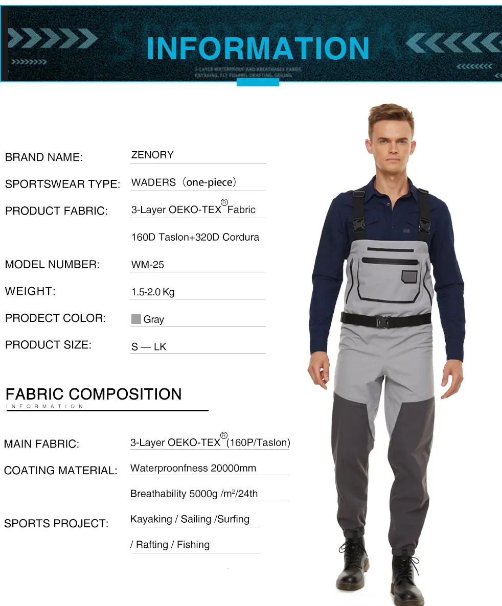 Водонепроницаемые и дышащие брюки для рыбалки из трехслойной водонепроницаемой ткани. Липучка на талии может быть скорректирована по размеру, чтобы лучше соответствовать вашему телу и предотвратить Замачивание воды. Позволяет свободно бродить по природе, носить неопреновые носки, а затем водонепроницаемая обувь может сделать рыбалку более удобной и приятной. Если вы находитесь на море, на озере или в реке, вы можете чувствовать себя комфортно и сухо.