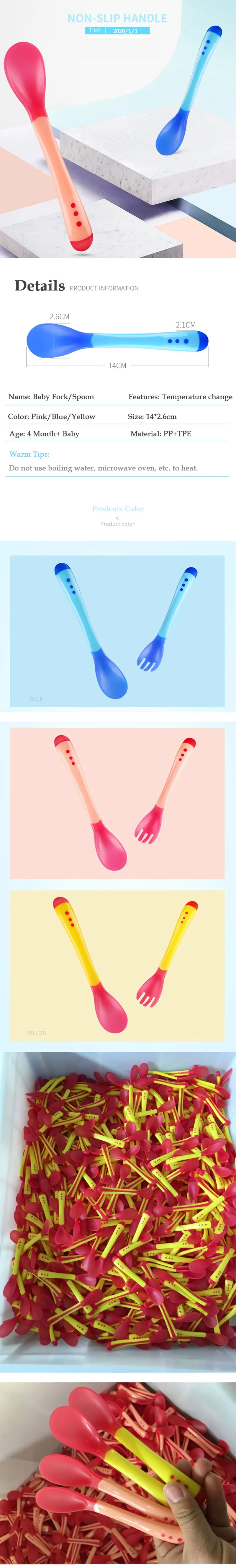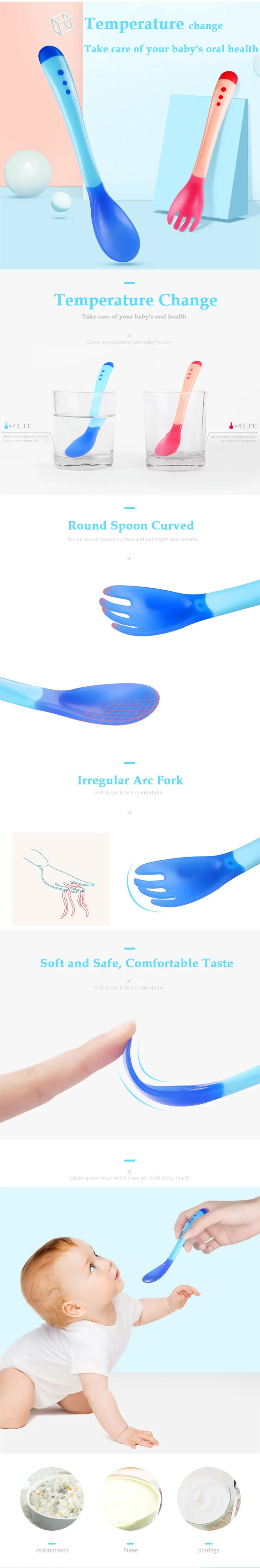 2. Эластомер на головке ложки содержит термохромный материал. Когда температура пищи превышает 40 °C, эластомер автоматически станет белым, что указывает на то, что еда слишком горячая и не подходит для кормления. Он безопасен и удобен в использовании.