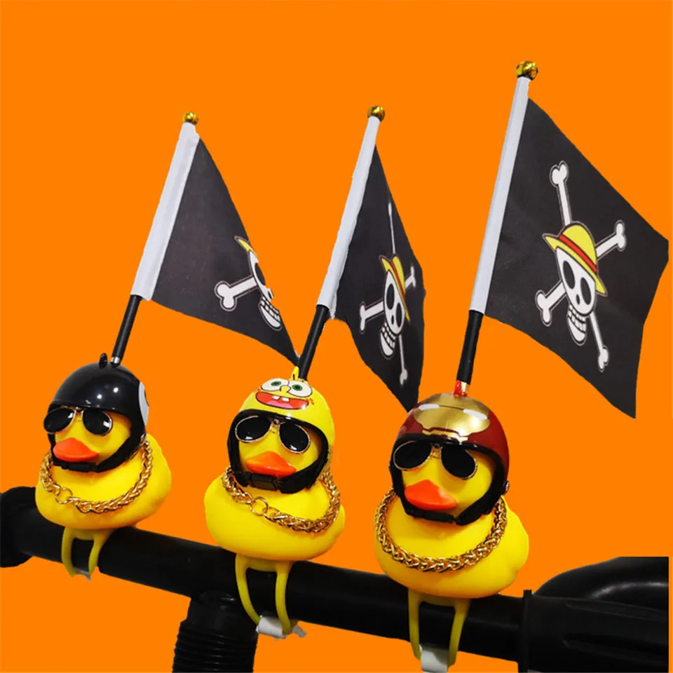 Стоящий пиратский флаг желтая утка велосипедный колокольчик сломанный ветрозащитный шлем маленький воздушный рожок для верховой езды безопасный колокольчик украшение автомобиля велосипедный Рог