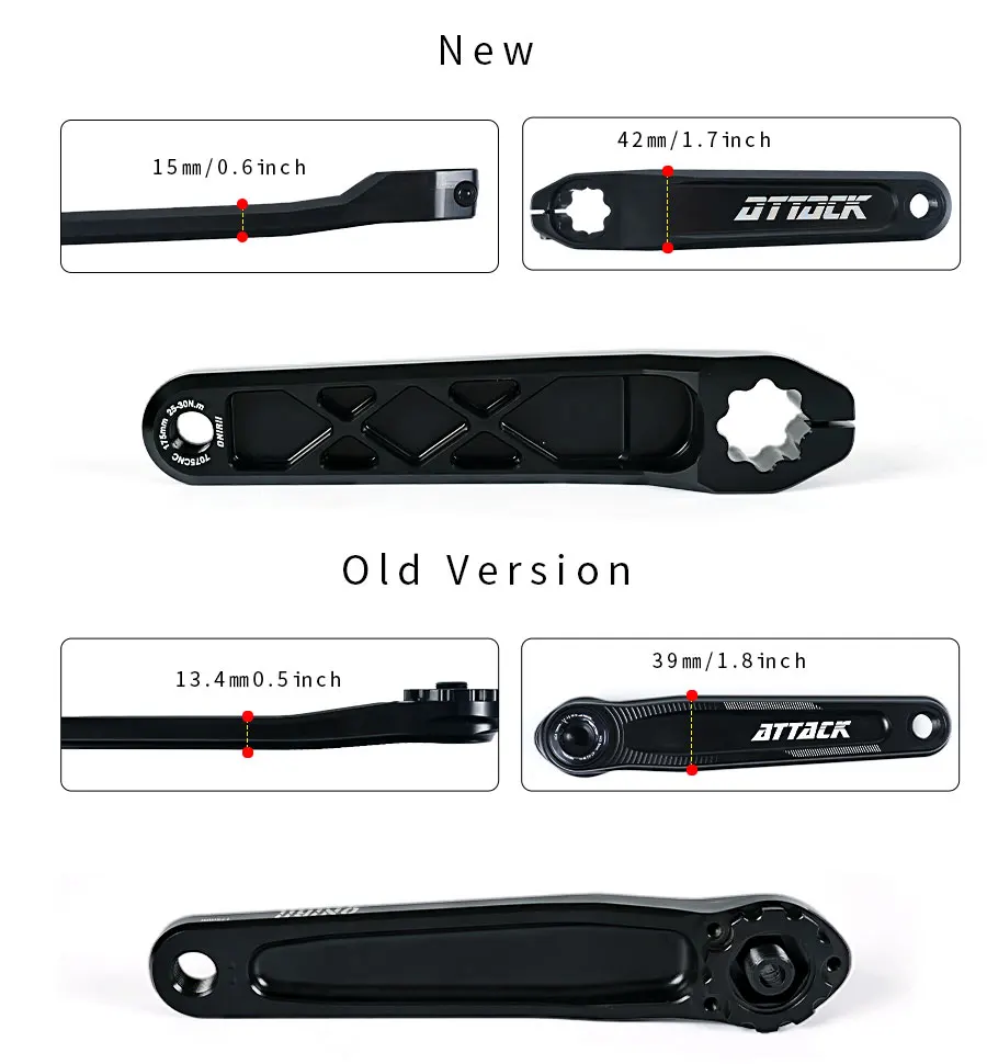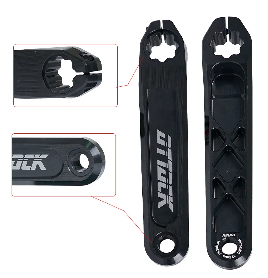 ATTACK cranks были оптимизированы и модернизированы в течение полугода, и, наконец, представлены покупателям, это обновленная версия, чтобы минимизировать вес и сохранить твердость и долговечность, полный набор черепов изготовлен из 7075 материала, рукоятки изготовлены из 7075 высококачественного алюминиевого сплава и ЧПУ, И рукоятки добавляются к четырем усиленным корпусам поддержки, полностью обеспечивают долговечность череповБренд:ONIRII