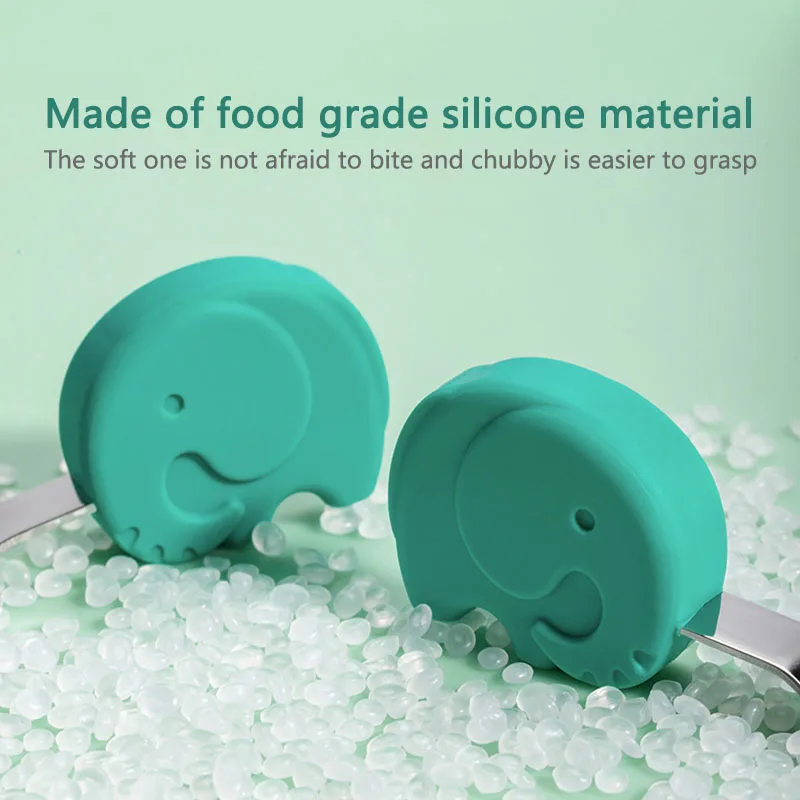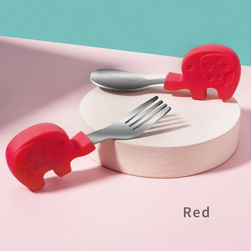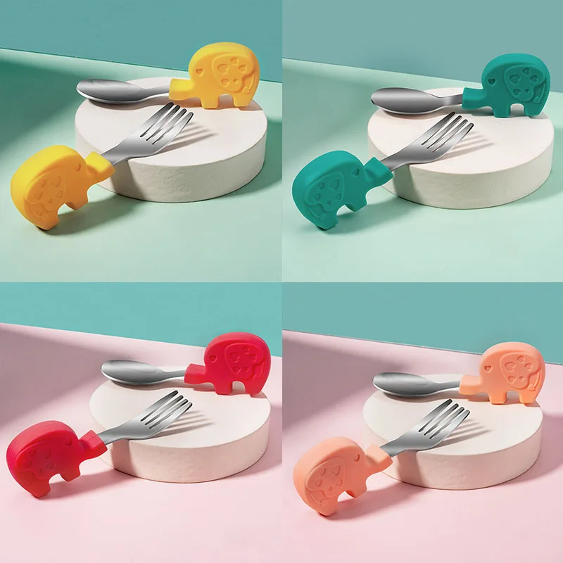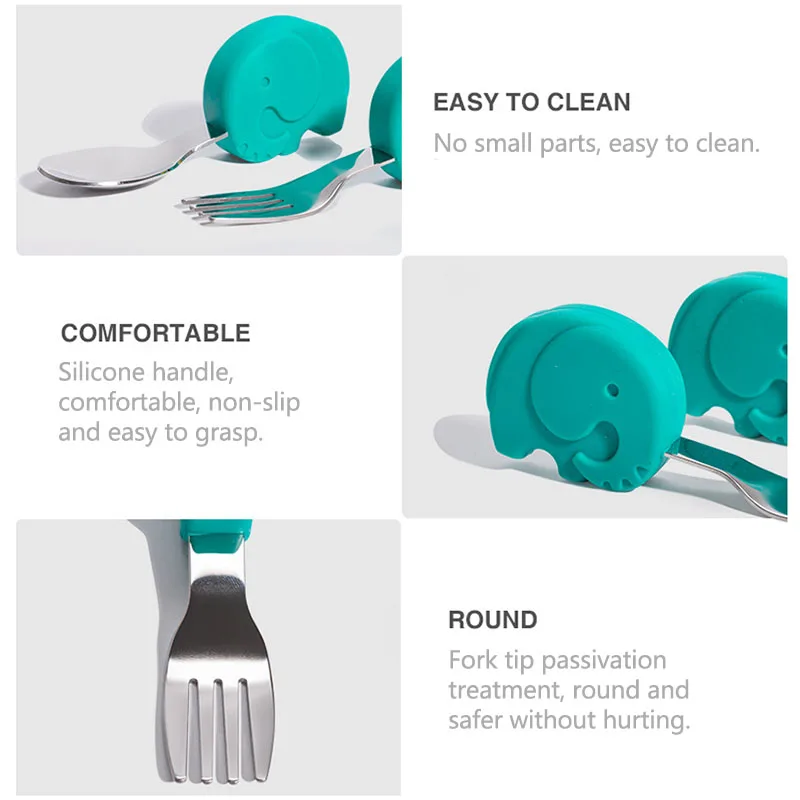 Набор посуды с мультяшным слоном, нержавеющая сталь и силиконовый материал, круглый и гладкий, без запаха.