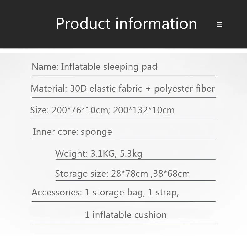 Особенности: автоматически надувается, мягкий, удобный и удобный для хранения