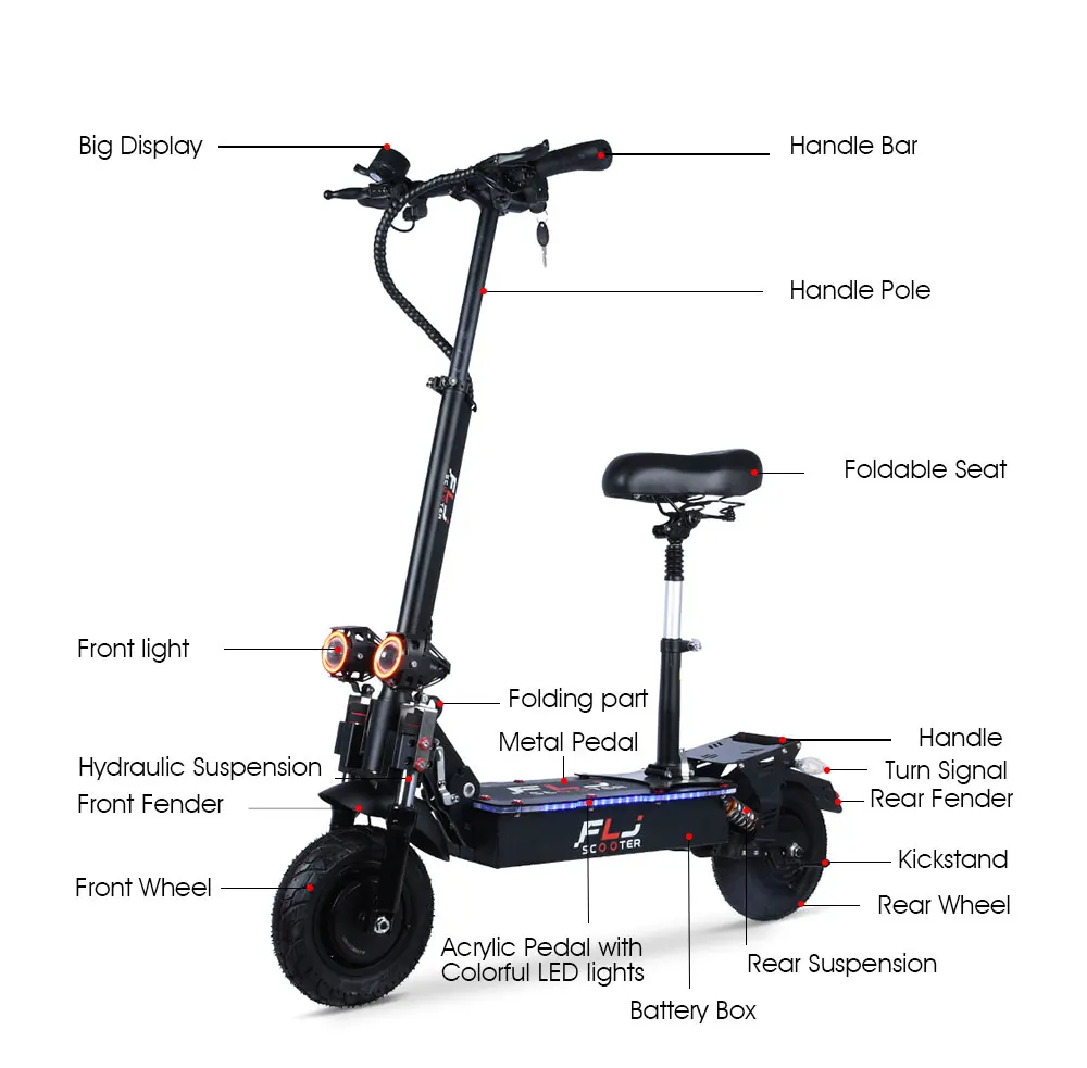 E1 Новый дизайн 10 дюймовыми колесами 52 в 2400 Вт двойной мотор электрический скутер