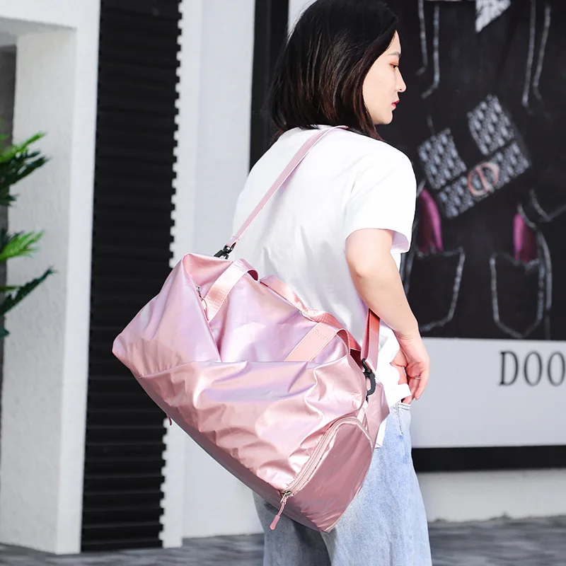 Глянцевая сумка-коврик для йоги, сумка для фитнеса, тренажерного зала, сумки для сухой и влажной одежды, женская обувь, дорожная тренировочная сумка, спортивная розовая спортивная сумка