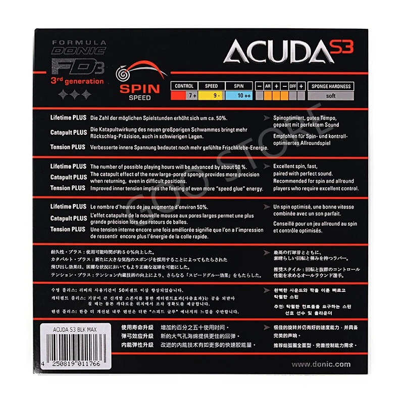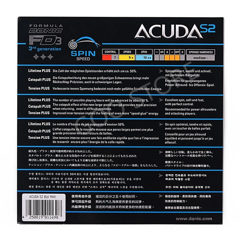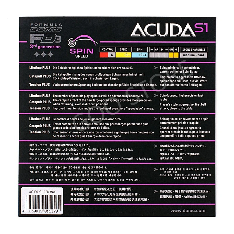 Доник настольный теннис резина акуда S1 скорость вращения прыщи с губкой пинг понг теннис де меса Максимальный предел вращения, высокая точность и быстрая Инкапсуляция. Acuda S1 очень быстрый рукав, и наиболее заметным является самое большое вращение. Независимо от того, находятся ли они рядом или далеко, golfers может использовать технологию игры на дуговой основе в полной мере. Акуда S1 использует средне-жесткую губку, но она все еще легко контролировать и чувствует себя отлично. Особенно подходит для наступательных дуг, первого удара мяча и игроков ближнего действия. Контроль: 6- Скорость: 10 + Вращение: 10 + + Толщина: макс (2,2 мм) Твердость: средняя жесткость Акуда S2 для настольного тенниса с губкой для настольного тенниса Акуда S2 быстрая, губка мягкая и поры губки большие. Этот дизайн делает его быстрым и имеет уникальный и громкий звук. Acuda S2 позволяет полностью использовать навыки игрока. Acuda S2 облегчает вращение вверх/вверх. Высокая точность. Самое сильное вращение, с мягкими, быстрыми и контролируемыми функциями. Особенно подходит для всех-вокруг и наступательных игроков. Управление: 7- Скорость: 9 + Вращение: 10 + + Твердость: средняя мягкая Стиль: быстрая атака/петля Резина для настольного тенниса danic ACUDA S3, сделанная в германии, вращающая все вокруг прыщи с губкой для пинг понга tenis de mesa Самое сильное вращение, быстрый и громкий. Очень мягкая губка добавляет прикосновение и звук, обеспечивая большую скорость во время сильного вращения и нажатия. Звук громкий и уникальный. Подходит для дуг и всех игроков, которым требуется превосходное управление мячом. Управление: 7 + Скорость: 9- Вращение: 10 + + Толщина: макс (2,2 мм) Твердость: мягкая