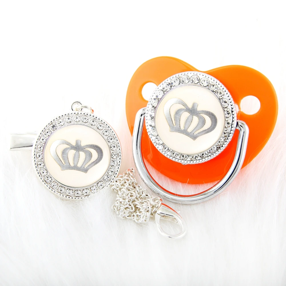 Блестящая Детская Соска с серебряной короной, силиконовая Ортодонтическая Соска для новорожденных, соска для сна 0-18 месяцев