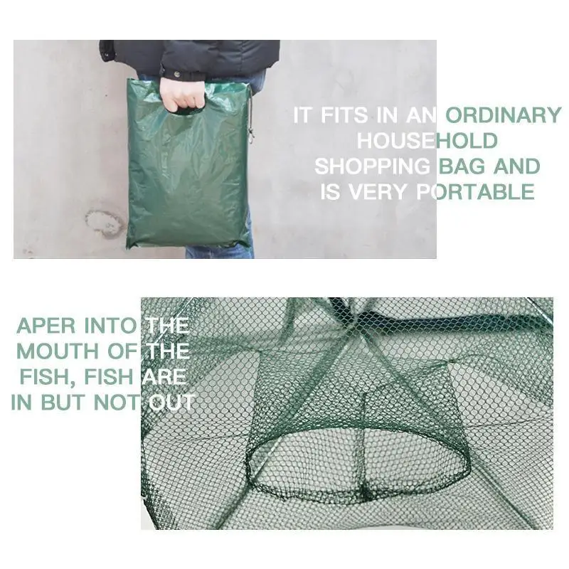 【Net с дизайном 360 ° 】Рыболовная сеть Ловушка с дизайном 360 °, отлично подходит для ловли плавки, угрей, крабов, рыб, лобстеров, креветок, раков, кроупап и т. д. Положите приманку в клетку, а затем поместите клетку в воду, лучший инструмент для любителей рыбалки.