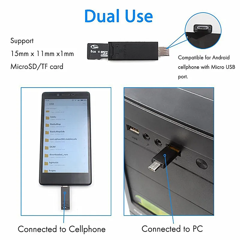 3. Функция 2 в 1 устройство для считывания с tf-карт для мобильного телефона и ноутбука