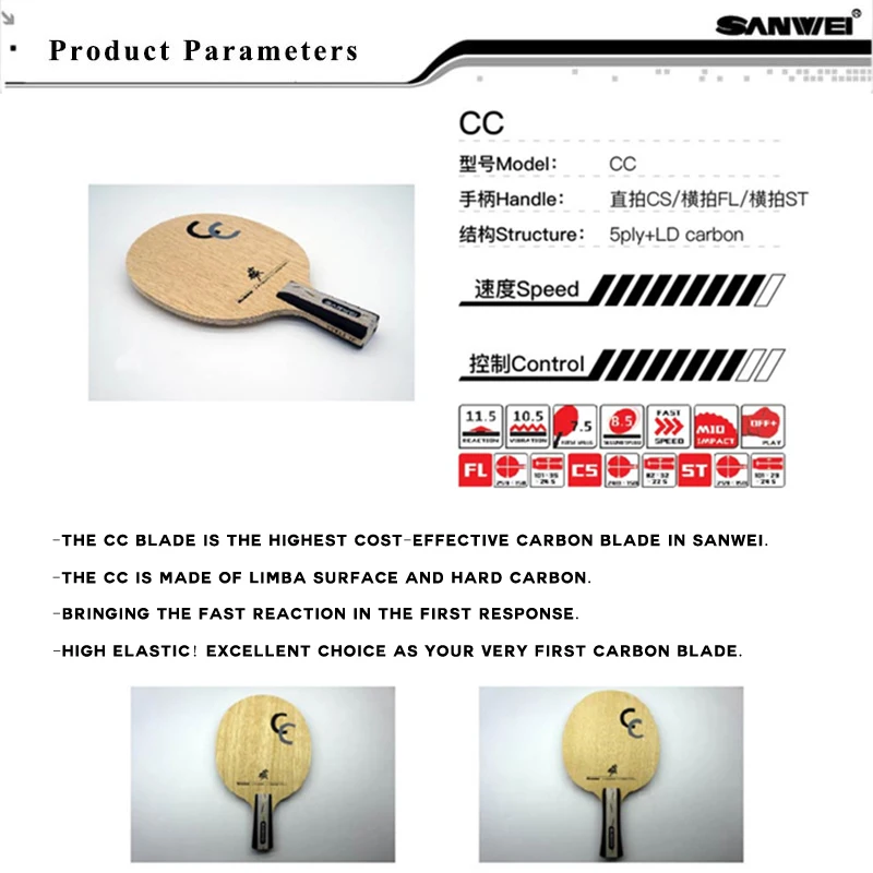 СС изготовлен из поверхности лимбы и твердого углерода. Быстрая реакция в первом отклике. Высокая эластичность! Отличный выбор как ваше первое углеродное лезвие.