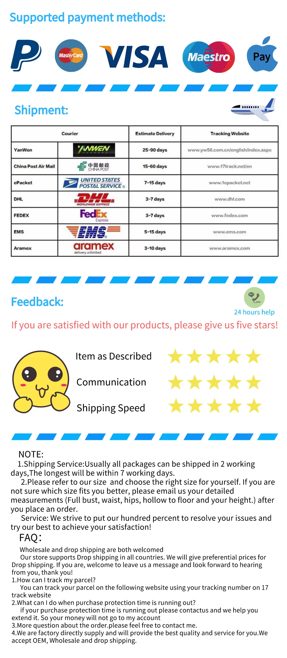 2. Пожалуйста, внимательно проверьте таблицу размеров. Особенно талия и бедра. Из-за разных партий товара возможна погрешность в 3 см