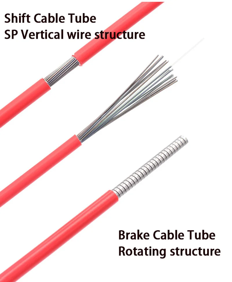 Материал: ПВХ + ПТФЭ + термообработка стальной проволоки Вес: 33,3 г/м (кабель для переключения), 62,8 г/м (тормозной кабель) Цвет: черный, белый, синий, зеленый, красный структура тормозного кабеля: конструкция вращающегося провода сдвига кабеля: вертикальная стальная проволока