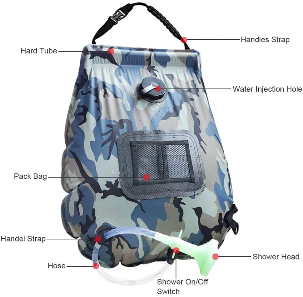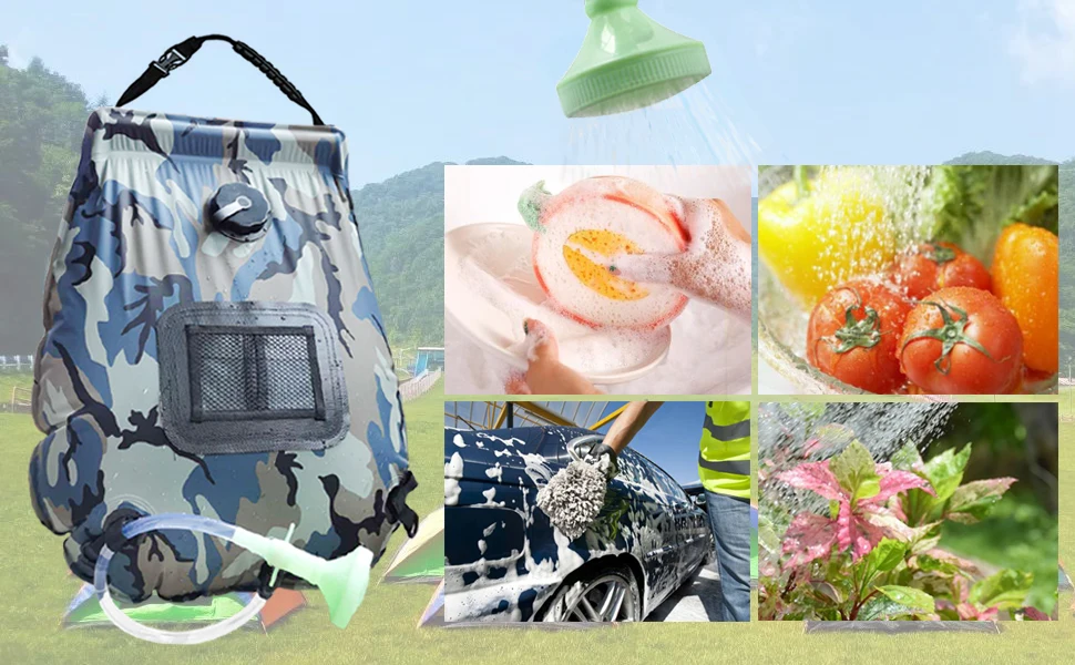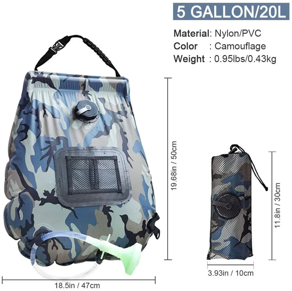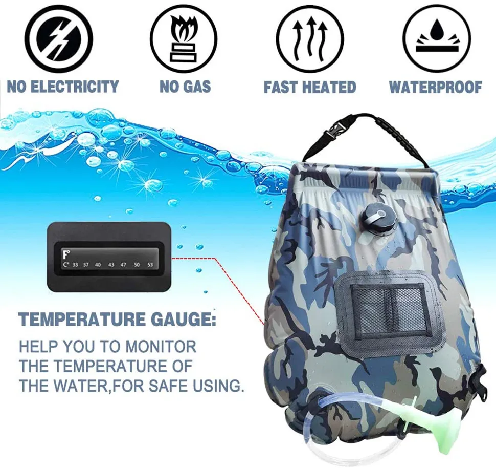 Эта сумка для душа изготовлена из экологически чистых и герметичных материалов, которые безопасны для здоровья человека. Этот мешок для ванной может вместить до 5 галлонов (20 л) воды для душа на открытом воздухе, позволит вам наслаждаться лучшим и освежающим ливнем в любом месте.