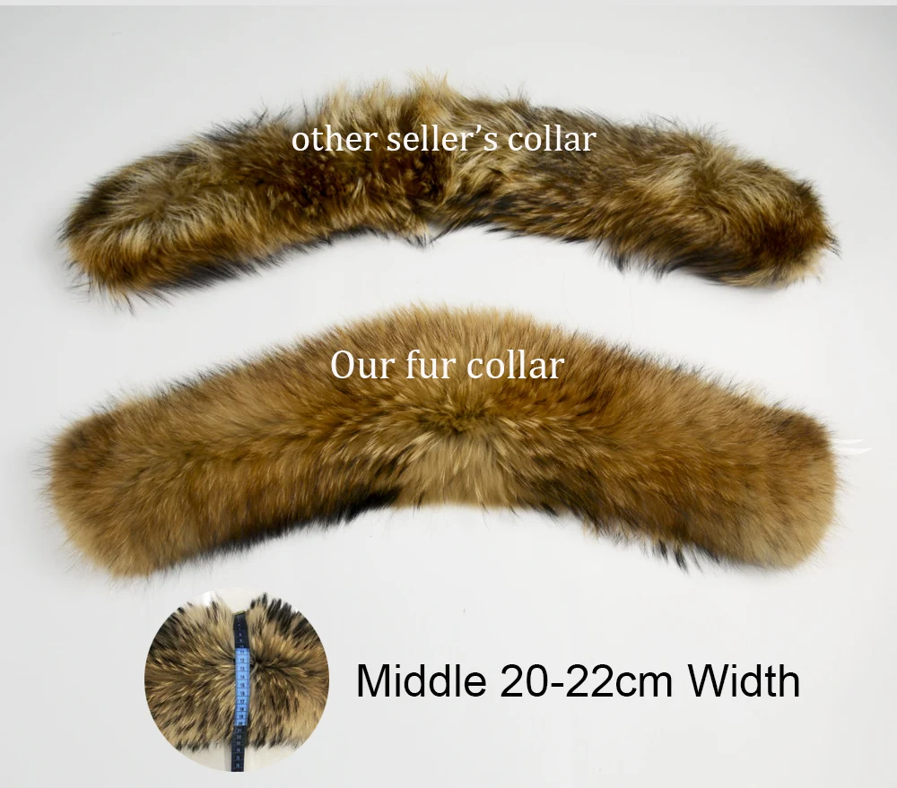 Сравнение меховых воротников между нашим магазином и другими магазинами, ширина нашего мехового воротника составляет 20-22 см.