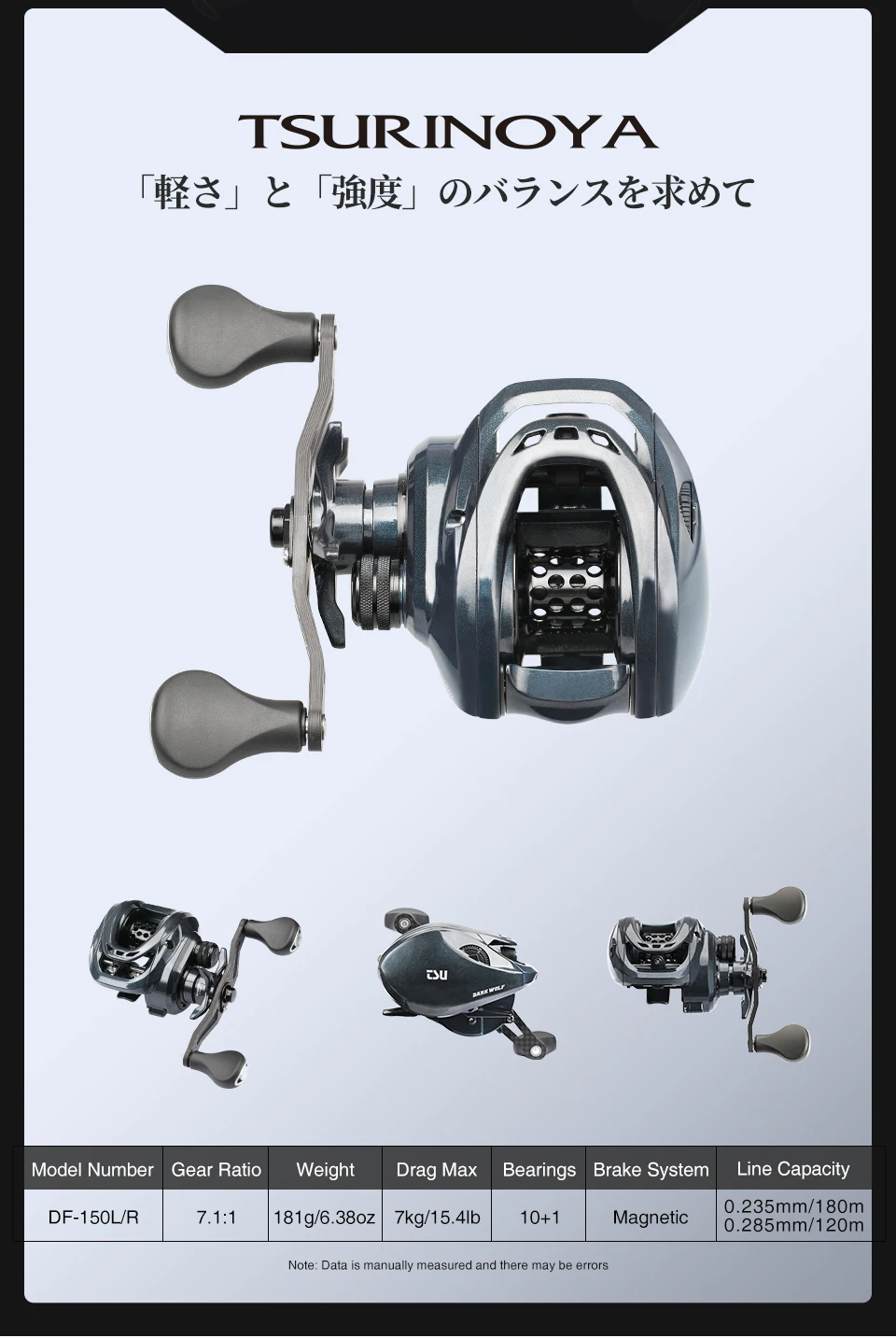 TSURINOYA низкий профиль приманка катушечная катушка Темный волк 150 7 кг сопротивления прочности высоты катушка для заброса приманки 7,1: 1 182g заброса Fsihing Катушка
