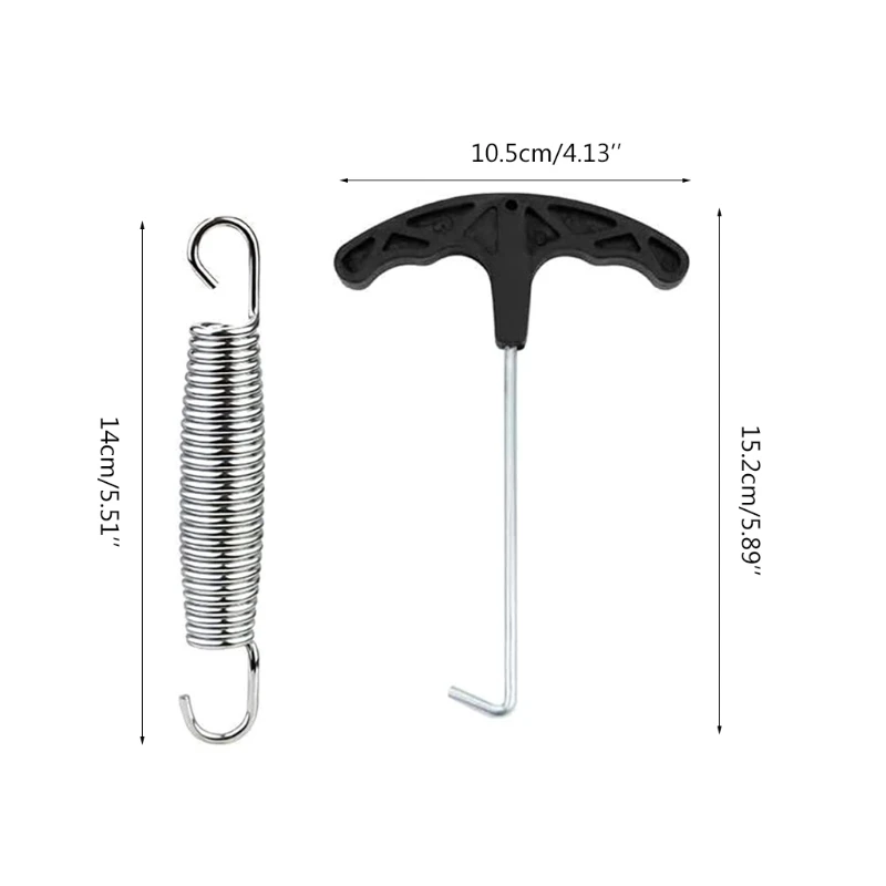 【Уникальный инструмент для натяжения пружины с Т-образным крюком наш инструмент для вытягивания пружины изготовлен из хорошего металлического материала, гораздо более прочный и удобный в использовании, не повредит вашу руку, делает сборку батута намного проще.
