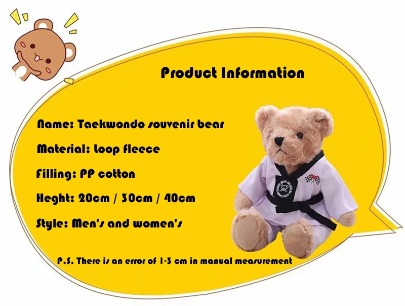 Клубные Сувениры для тхэквондо, медведь, детские подарки для девочек, плюшевые куклы, игрушки для любителей тхэквондо, кукольные костюмы для тхэквондо, плюшевые игрушки