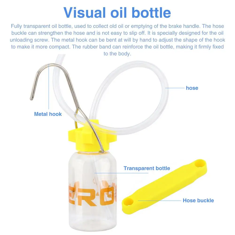 3. Бутылка с видимым маслом: Полностью прозрачная масляная бутылка, используемая для сбора старого масла или снятия тормозной ручки. Пряжка шланга может укрепить шланг и не легко соскальзывать. Он специально разработан для масла винт для сброса. Металлический крюк может быть согнут по желанию, чтобы отрегулировать форму крючка. Сделайте его более компактным, Резиновая лента может укрепить масляную бутылку, что делает его прочно закрепленным на корпусе.
