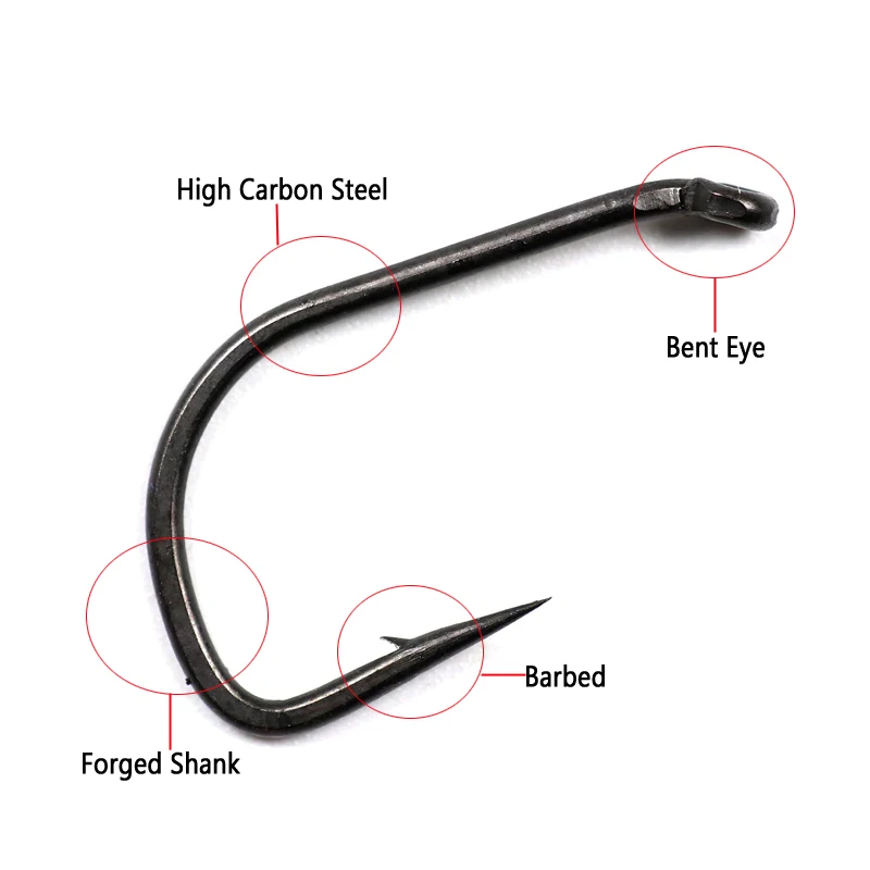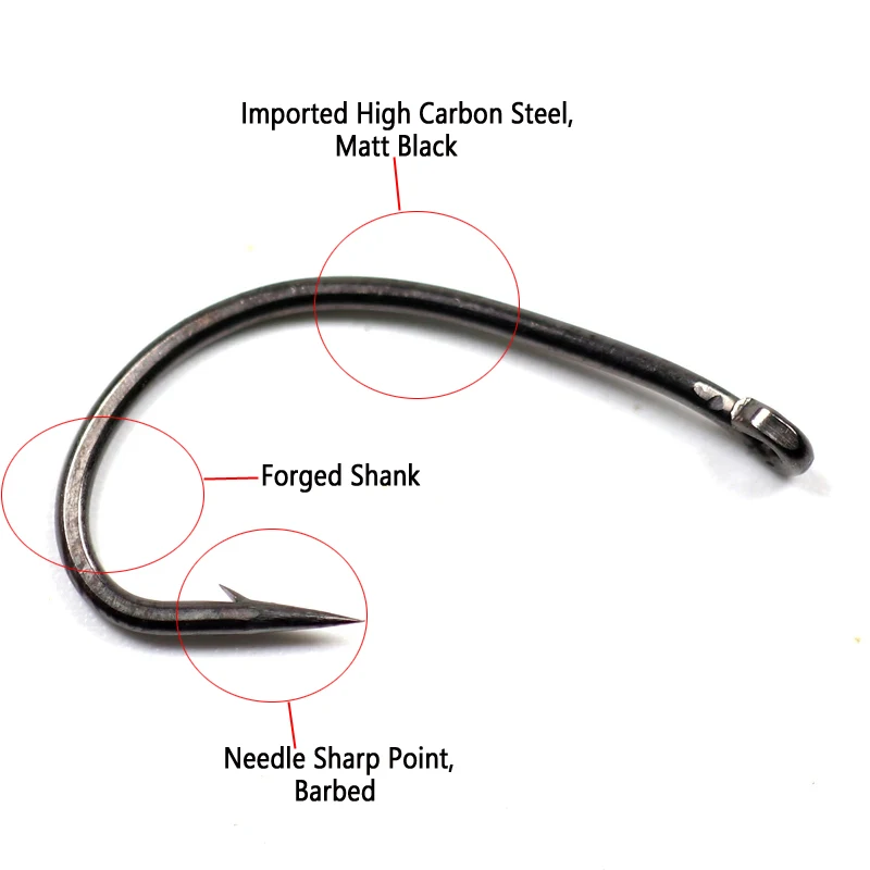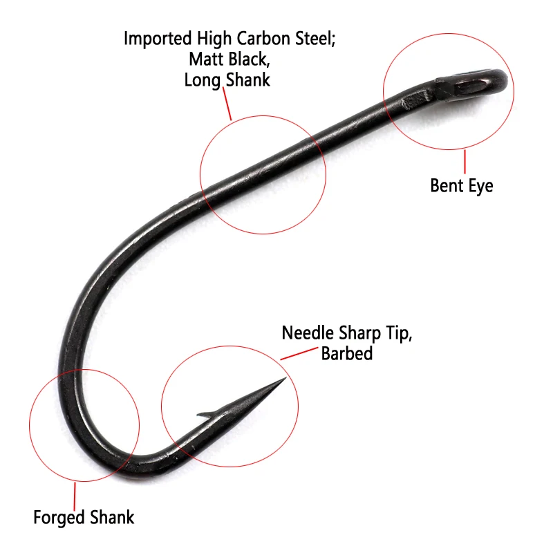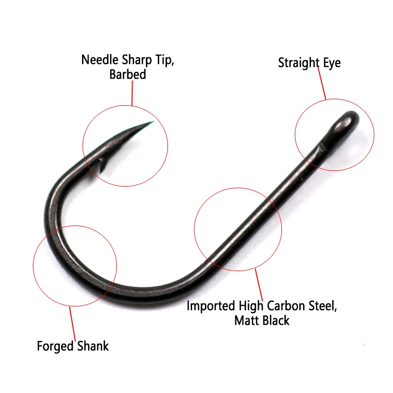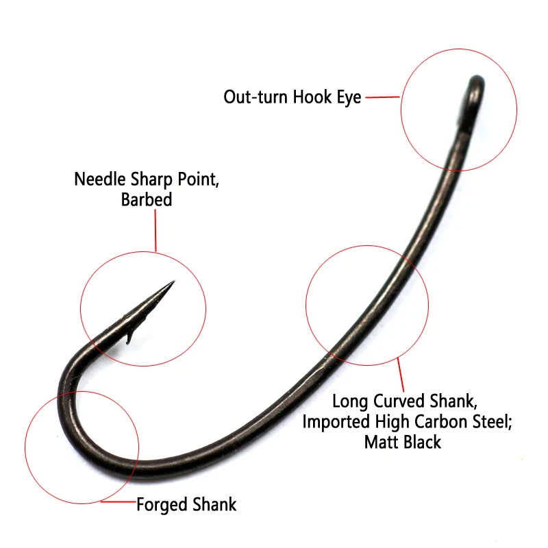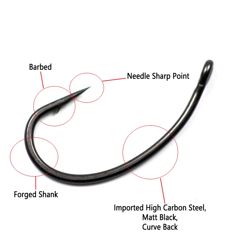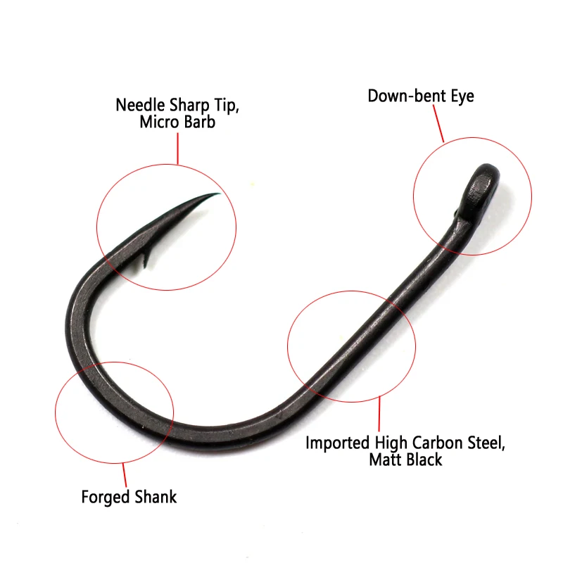 Bimoo 20 шт. европейские матовые черные крючки для карпа из толстой проволоки из высокоуглеродистой стали с изогнутым хвостовиком Yn BN BNR Wi Карп Рыболовный крючок #2-#10