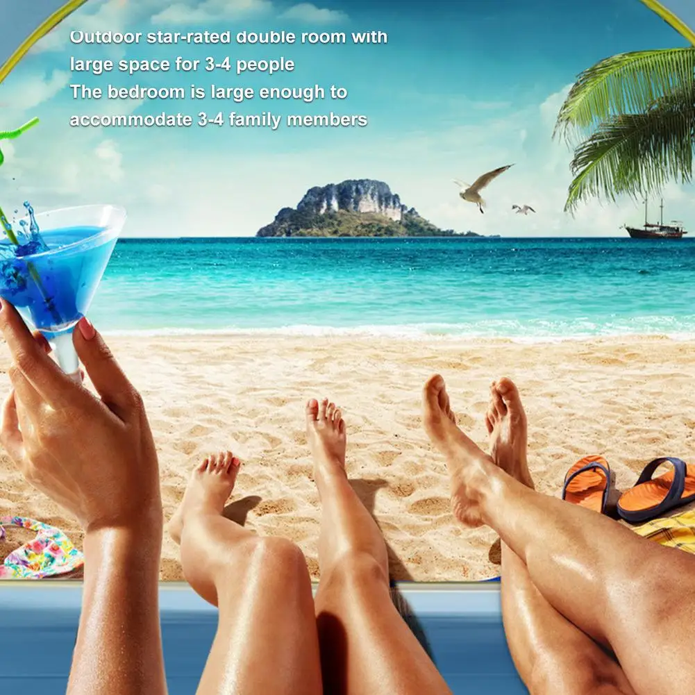 Для 3-4 человек открытый пляжный тент с серебряным покрытием 3-сторонний вентилируемый тент Защита от солнца и пляжа двухполюсная вентиляционная палатка