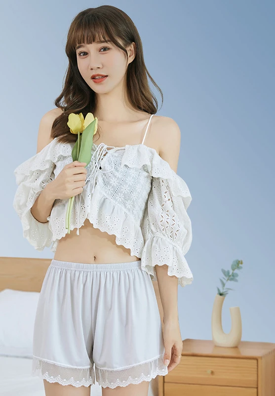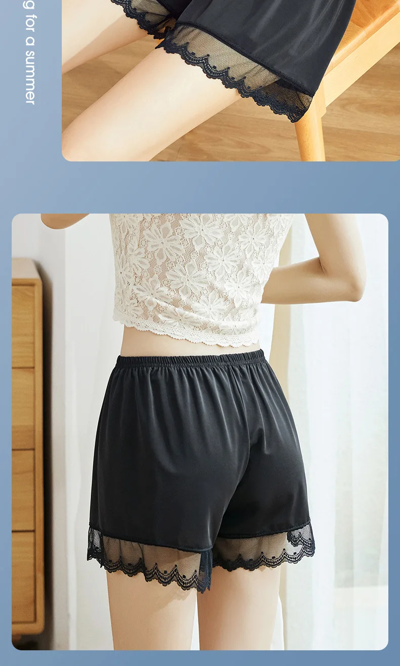 Сексуальный кружевной отделкой, с эластичной резинкой на талии, милые одноцветные шорты, подходящие для Пижама для сна, домашняя одежда, шортиками, одежда для сна комплект одежды и т. д.