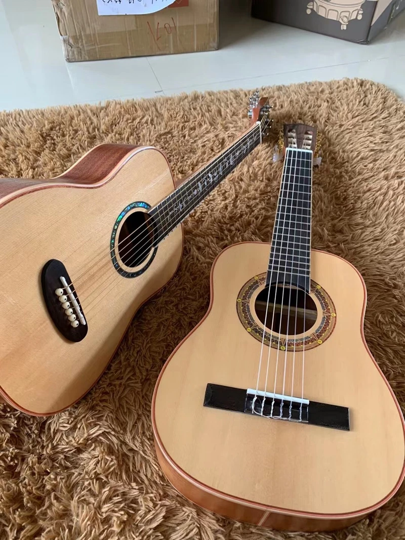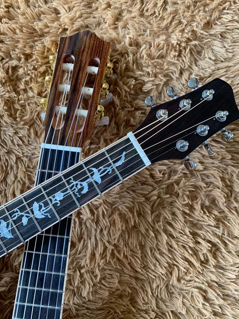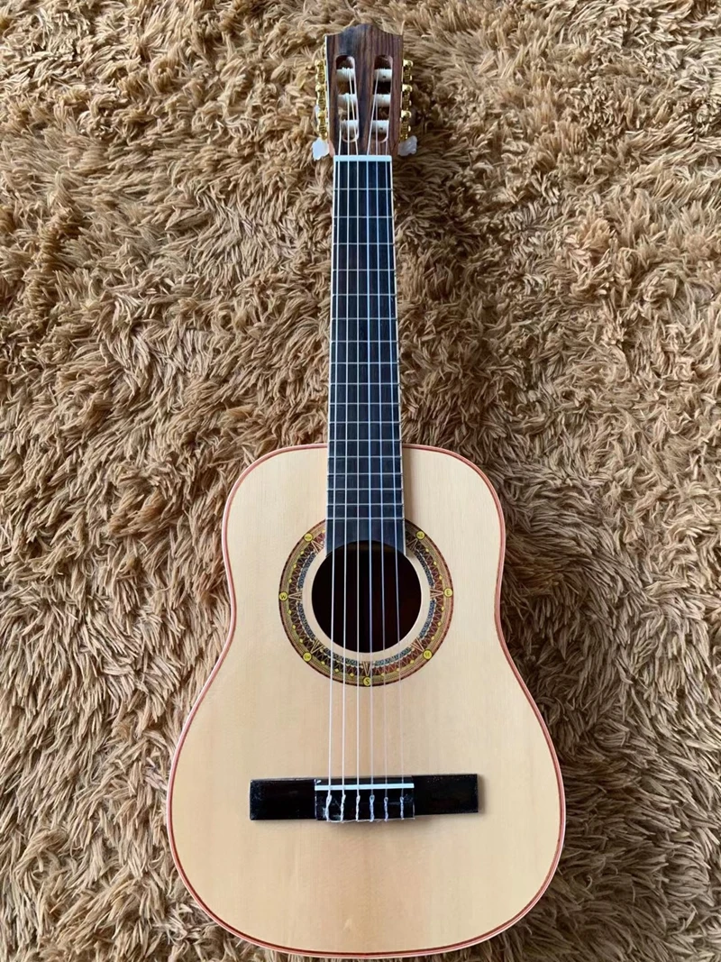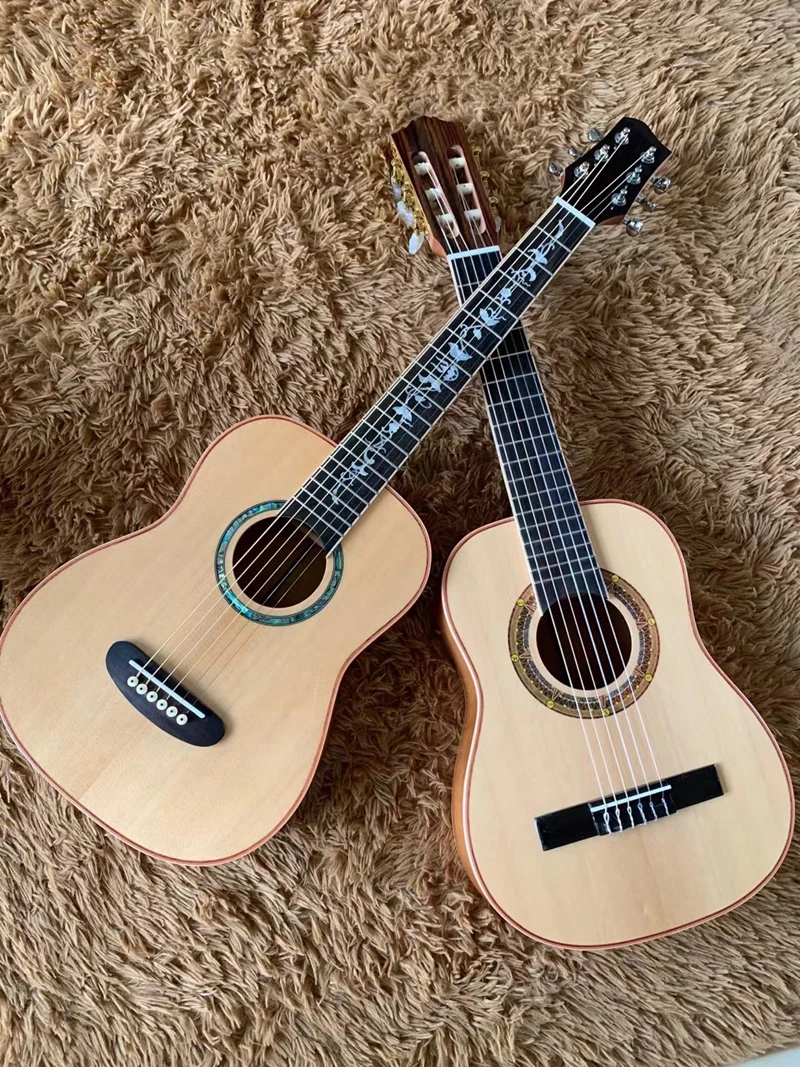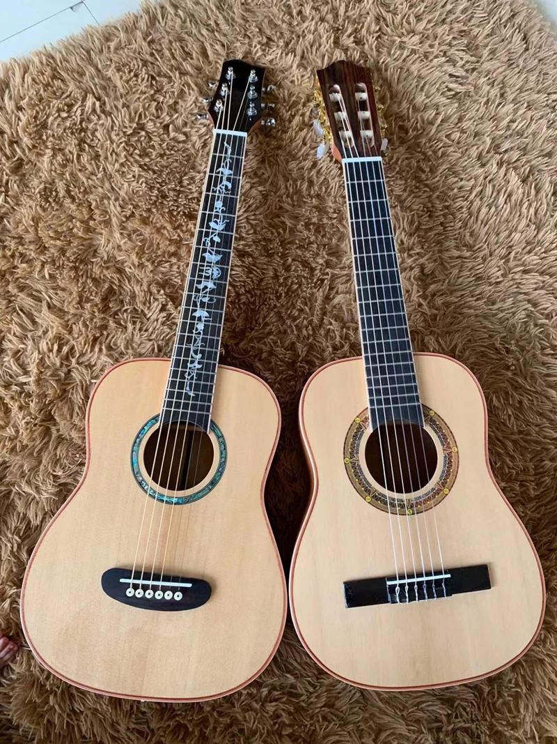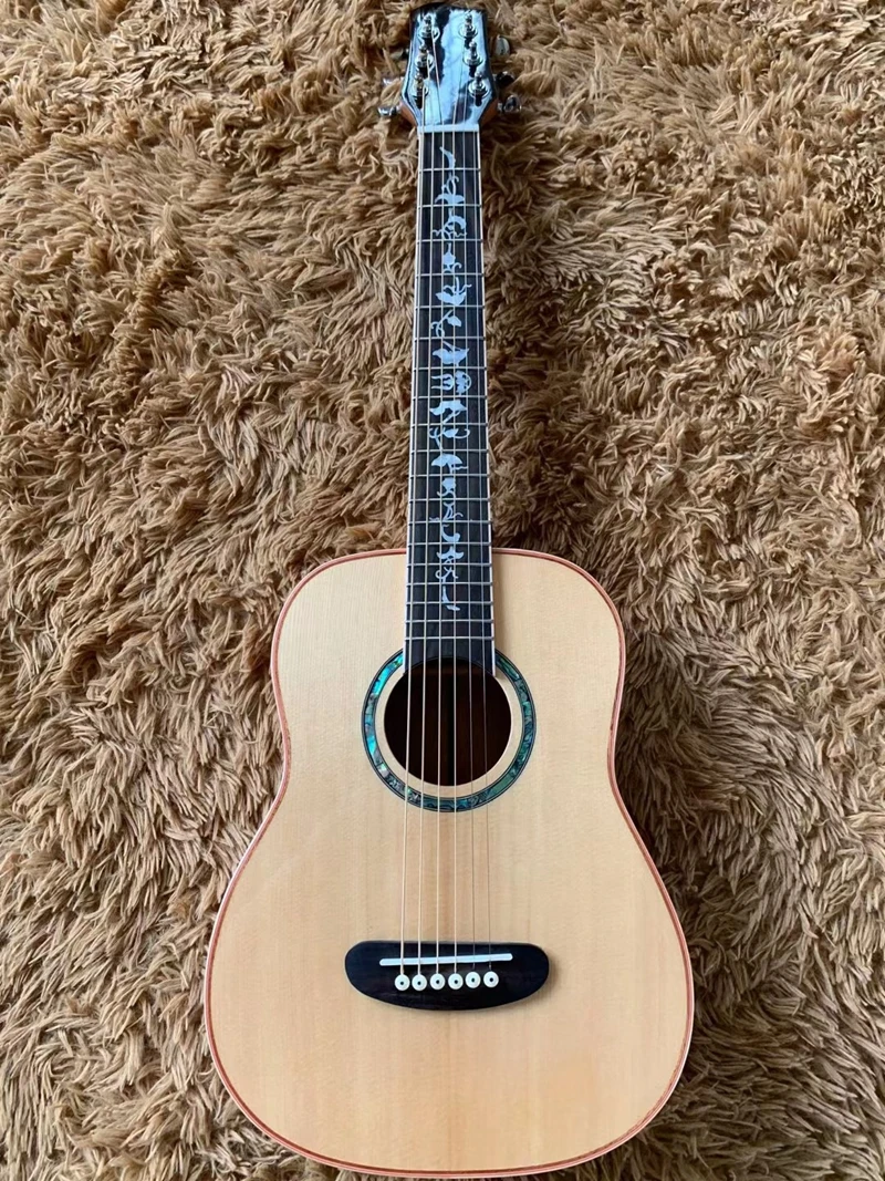 Мини гитара, 30 дюймов, акустическая гитара, 6 струн, для путешествий, гитара из цельного дерева, народная гитара, гитара, цветок, инкрустация грифа, с грушевой оболочкой