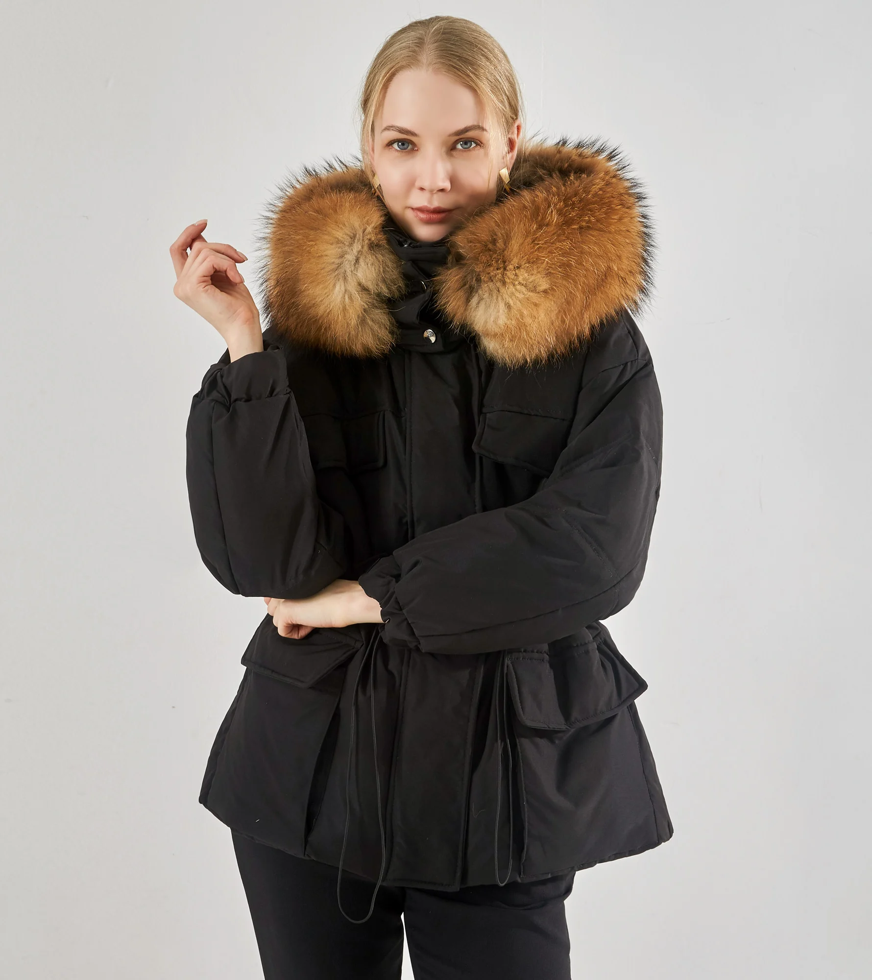 Сравнение меховых воротников между нашим магазином и другими магазинами, ширина нашего мехового воротника составляет 20-22 см.