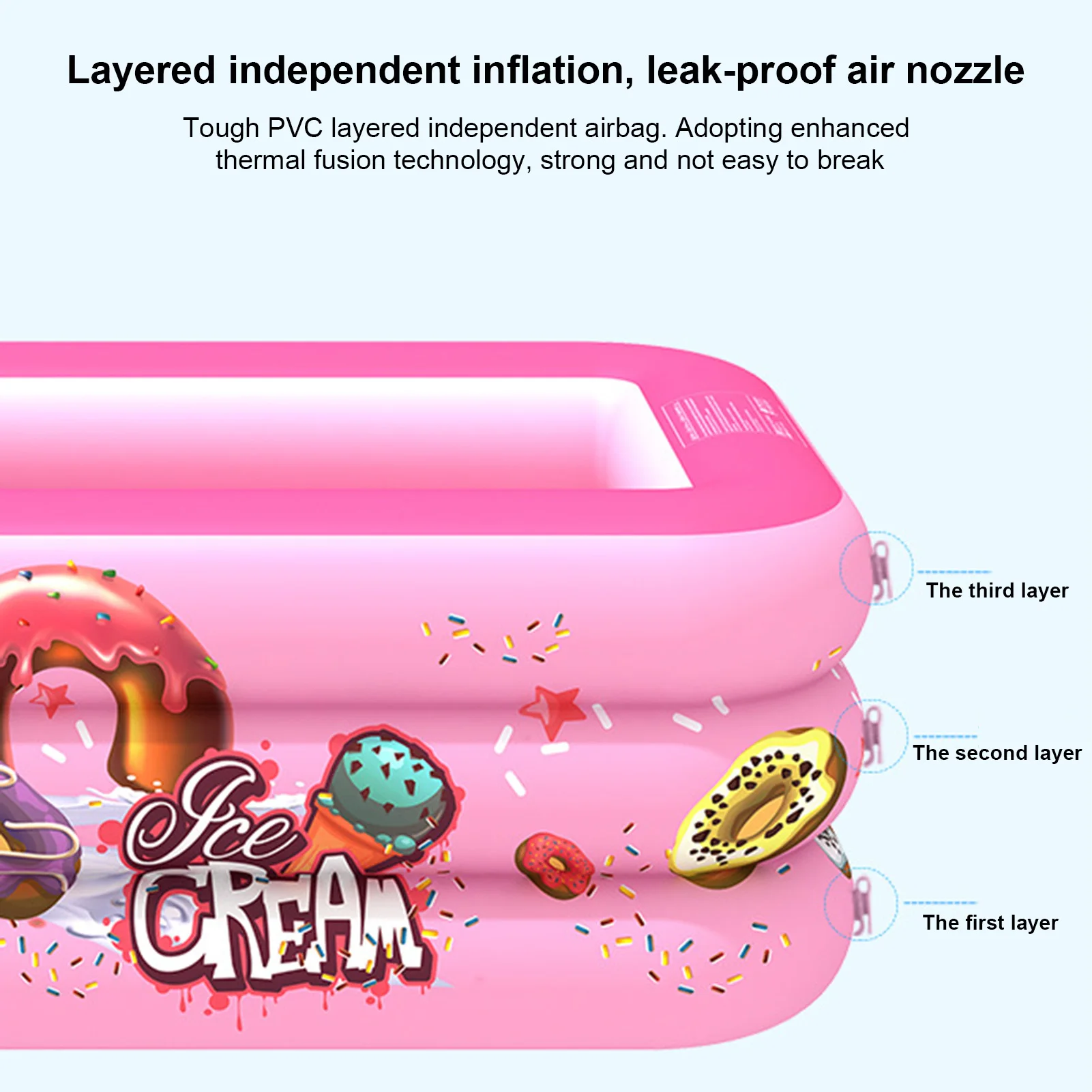 2. Безопасный и прочный: Все используемые материалы экологически чистые и нетоксичные, в соответствии с международными стандартами для детских игрушек, на 50% толще, чем большинство ПВХ на рынке, уменьшение риска проколов и обеспечение более длительного срока службы.
