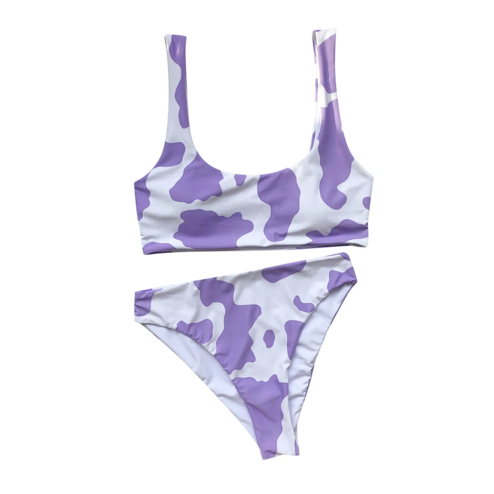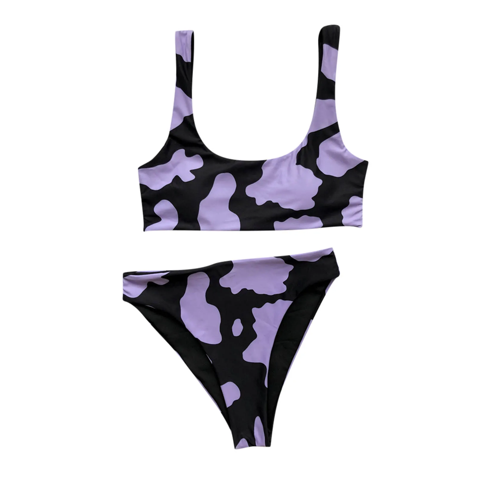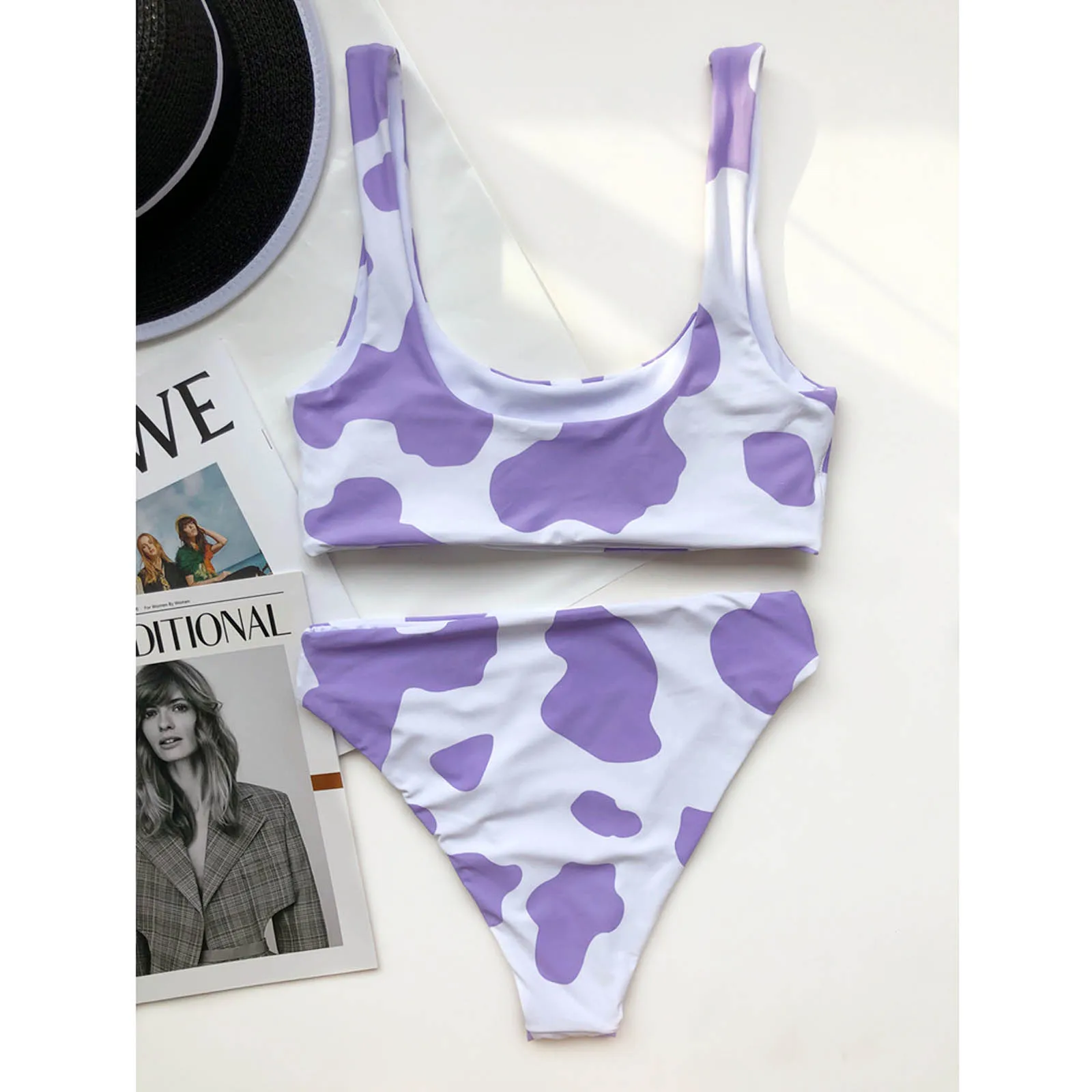 Сексуальный новый пляжный бикини, сексуальный купальник с высокой талией и принтом коровы, иностранный купальник, маленький свежий летний купальник для женщин Купальные костюмы с высокой талией 2020 Пуш-Ап сексуальный купальник с принтом коровы