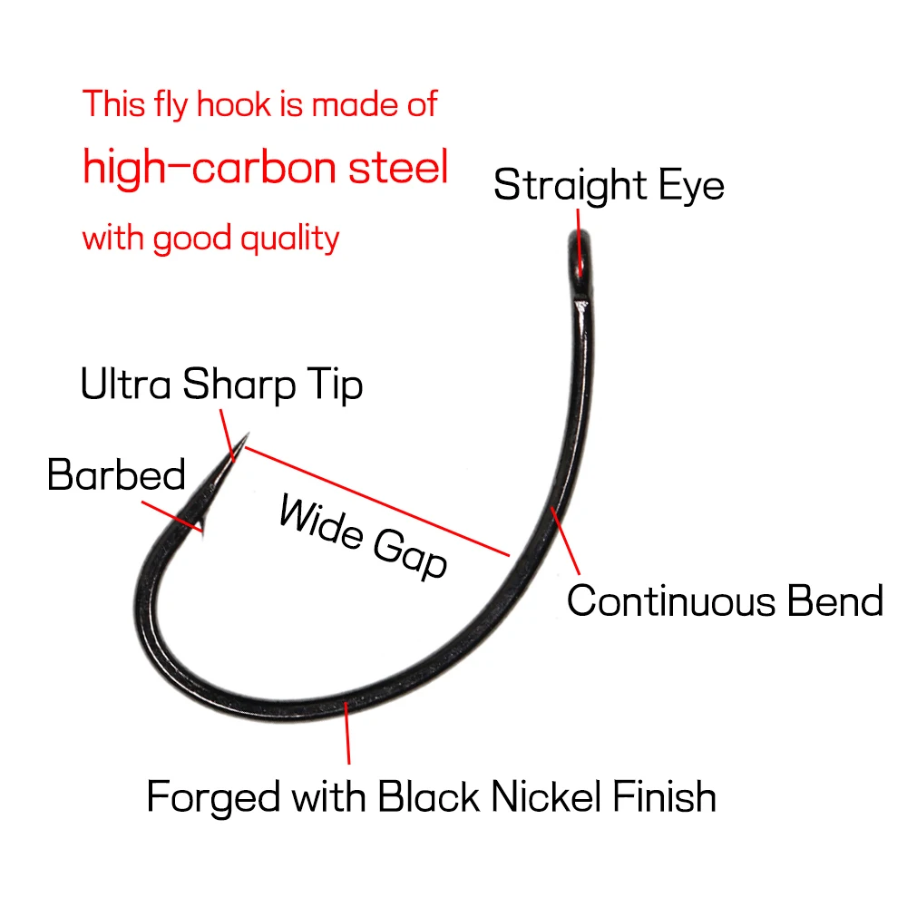 Для завязывания изогнутой куколки Caddis, эмергеров, калек и сухих мух в стиле Klinkhammer. Этот крючок с зазубринами в соревнованиях быстро прокалывается и надежно удерживается благодаря сверхострой конструкции из высокоуглеродистой стали и стойкому черно-никелевому покрытию.