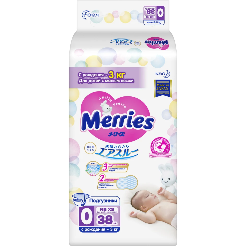 Подгузники Merries для детей с малым весом, размер NB XS, 38шт