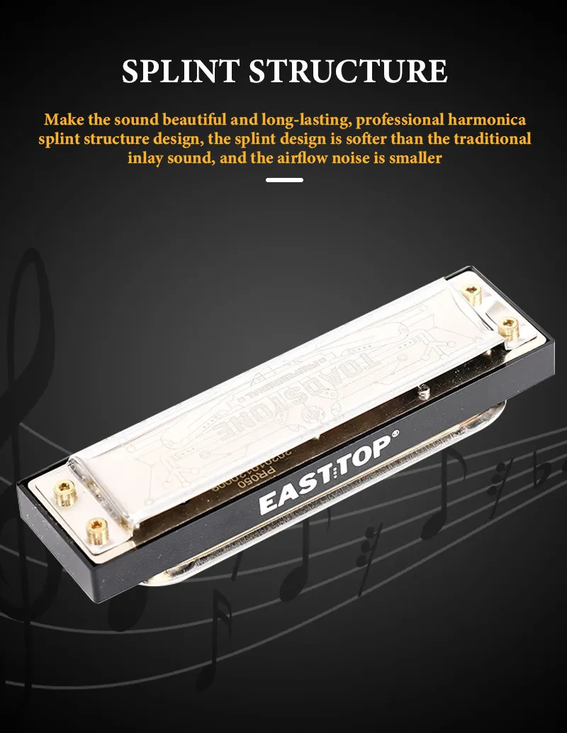 EASTTOP PRO50 10 отверстий Губная гармошка для рта для студентов Новая Профессиональная Губная гармошка для начинающих, студентов, детей, подарок для детей