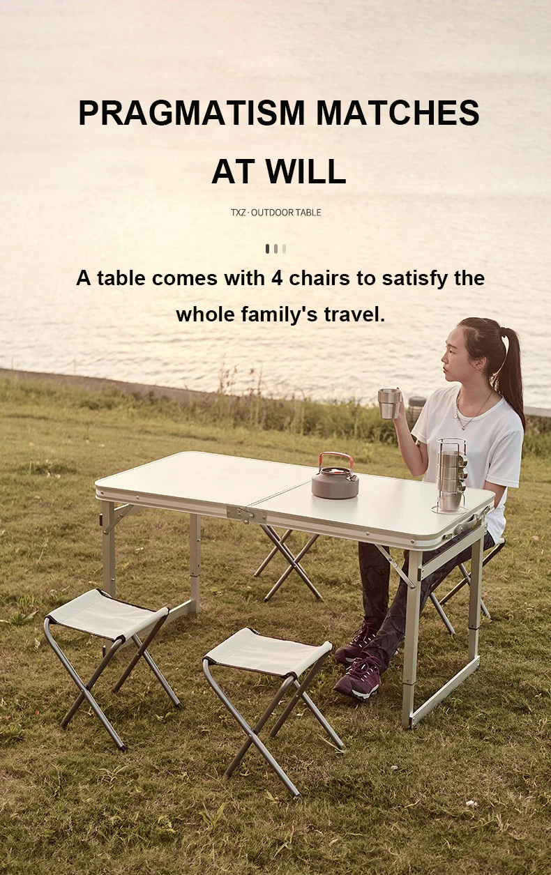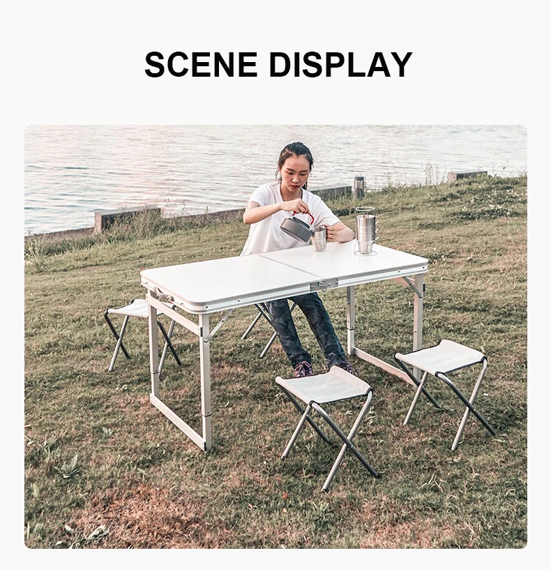 Настольный стул 4 футов Алюминий имеет выдвижную ручку, легкий, но очень прочный и не деформируется, с 4 стульями, удобен в хранении, переноске, транспортировке и использовании, используется для длительный срок службы.