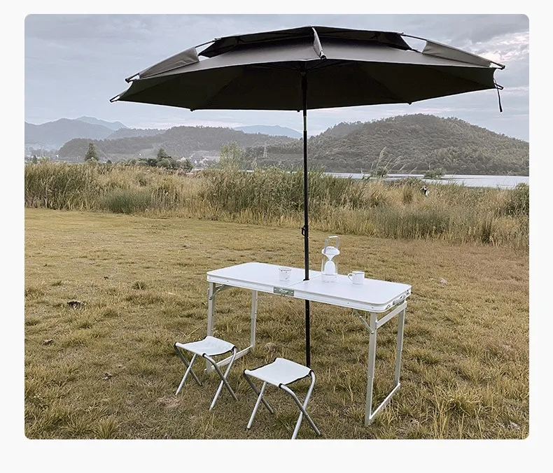 Изготовлен из высококачественных волокнистых материалов средней плотности за счет процесса распыления, толщина 0,2 дюйма, стол экологически чистый, огнестойкий, нетоксичный, без запаха, гладкий, устойчивый к истиранию, коррозии, И прочный. Важно, что рабочий стол легко чистится. Зарезервированный дизайн отверстия для зонта, складной стол можно лучше использовать на открытом воздухе.
