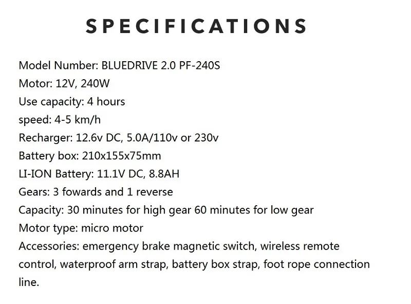 Мощность двигателя: 240 Вт, 12 В постоянного тока