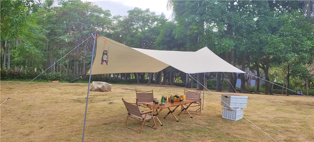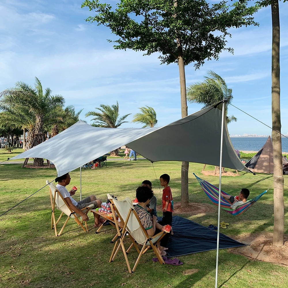 Когда барбекю, кемпинг и пикники, пожалуйста, держите безопасное расстояние между огнем и навесом, чтобы избежать опасности.