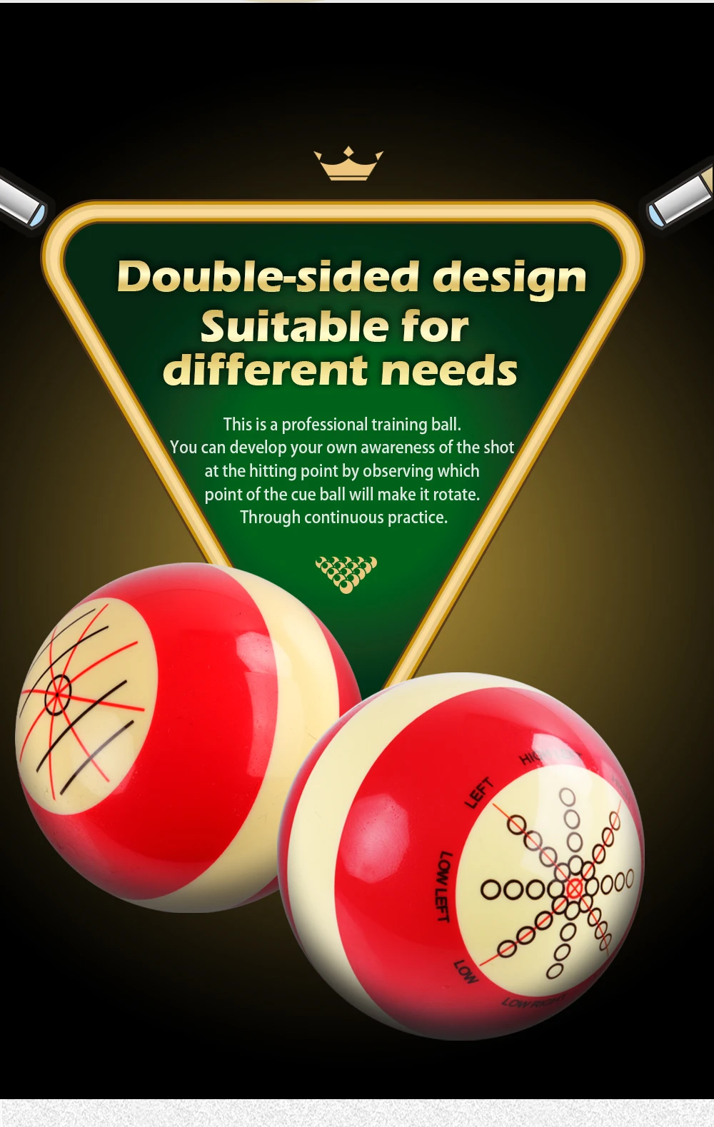 2.This is a professional training ball. You can develop your own awareness of the shot at the hitting point by observing which point of the cue ball will make it rotate.