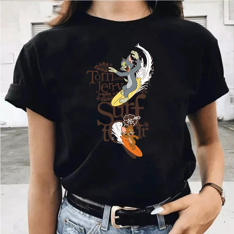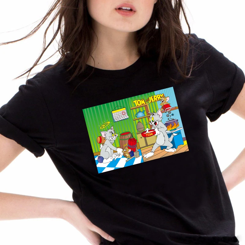 Черно-белая двухцветная футболка в минималистском стиле, Женская винтажная модная футболка с милым рисунком
