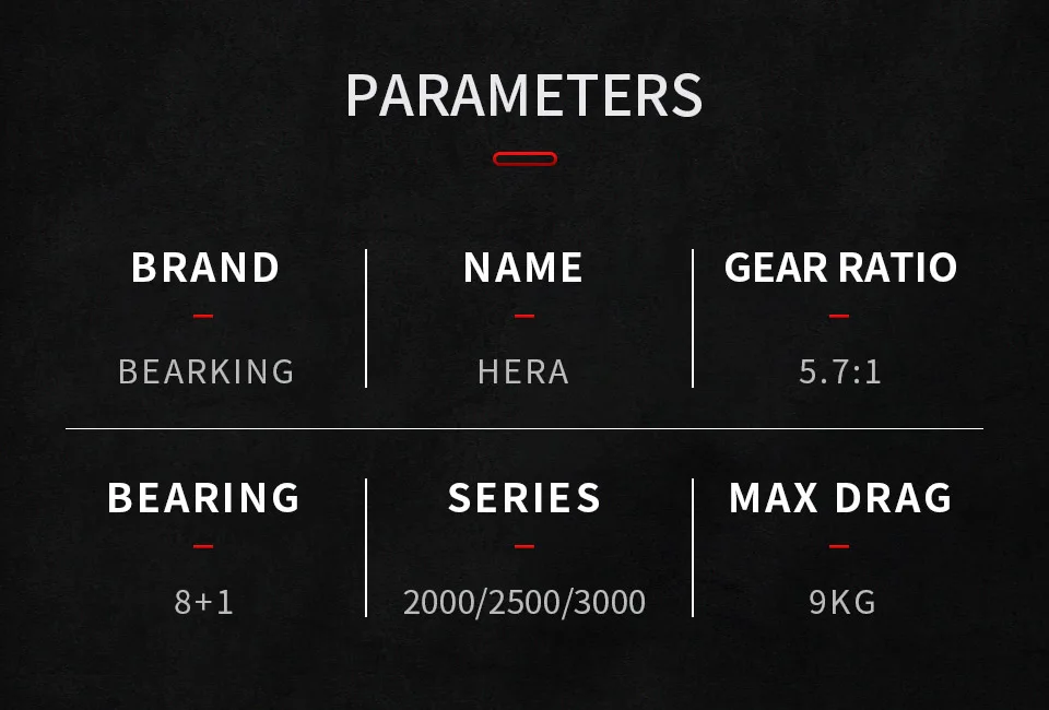 Zeus 2500 | Шестерни передаточное число: 5,7: 1 | Вес: 8,99 oz | Подшипники: 9BB | Максимальная сила натяжения: 7 кг | Линия Ёмкость (LBS/YDS): 0,9/155-1,35/100