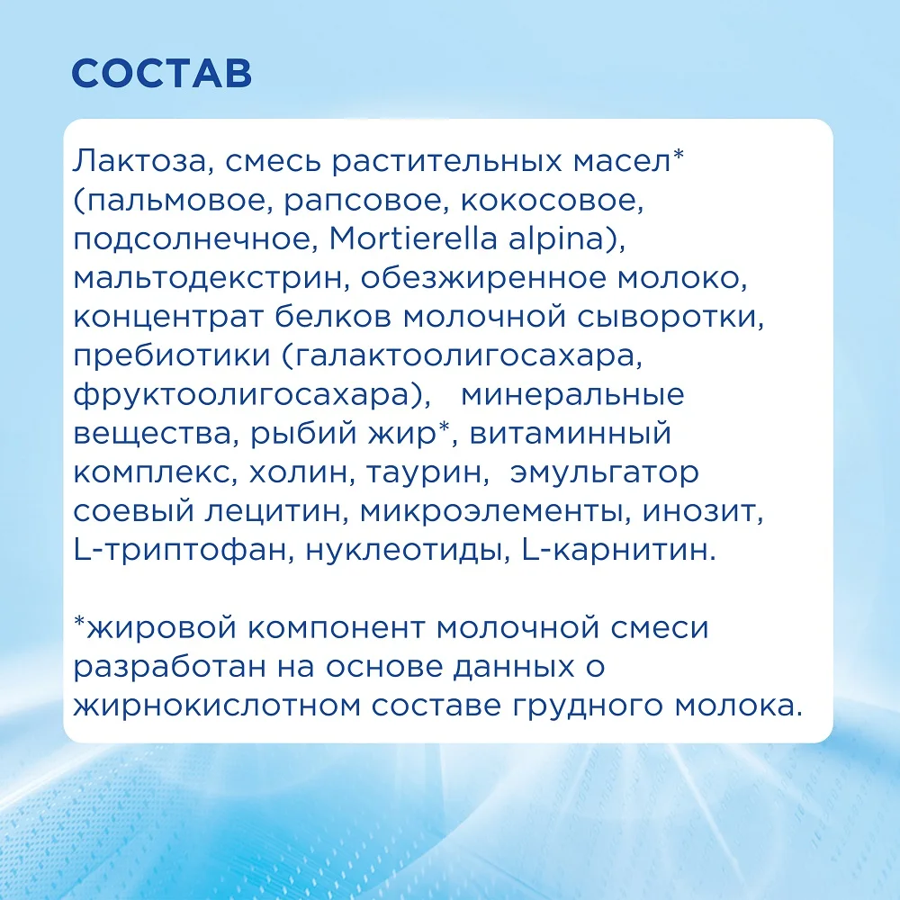 Пребиотики GOS/FOS способствуют развитию собственной здоровой микрофлоры кишечника и поддерживают иммунитет ребёнка, помогая снижать риск возникновения аллергии и инфекций.